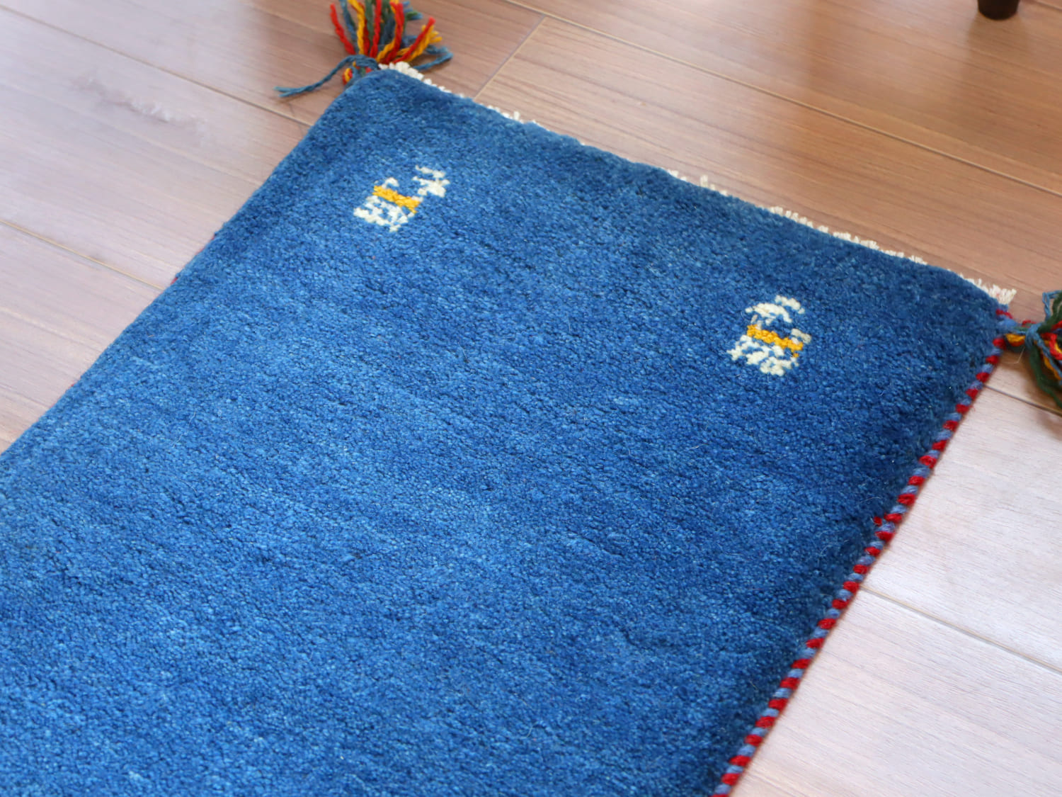 ギャッベ ミニギャベ イラン 60x42cm ブルー シンプル 無地 動物モチーフ