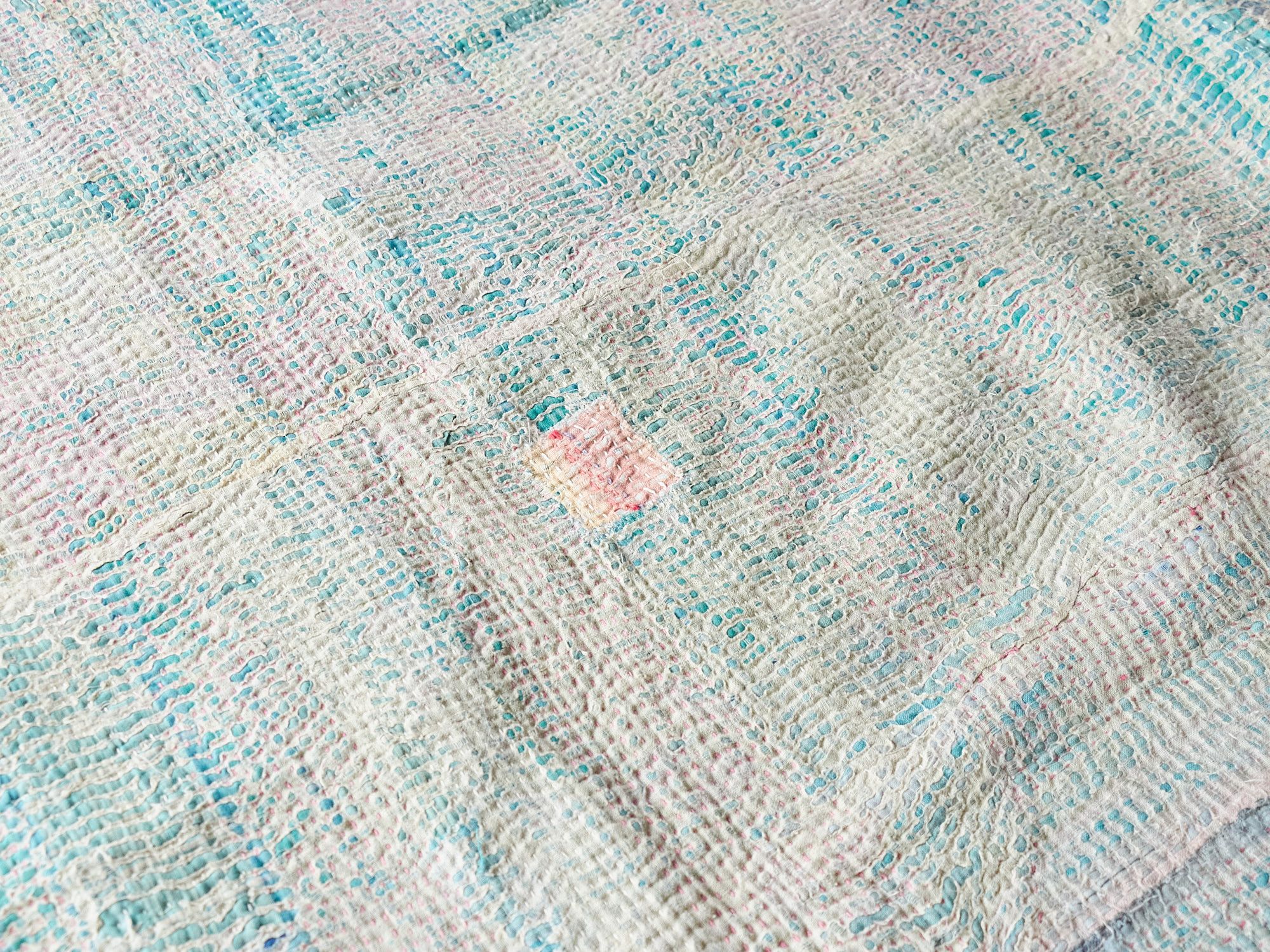 - インド カンタ刺繍 パッチワーク ラリーキルト ヴィンテージ199×139cm Kantha embroidery India