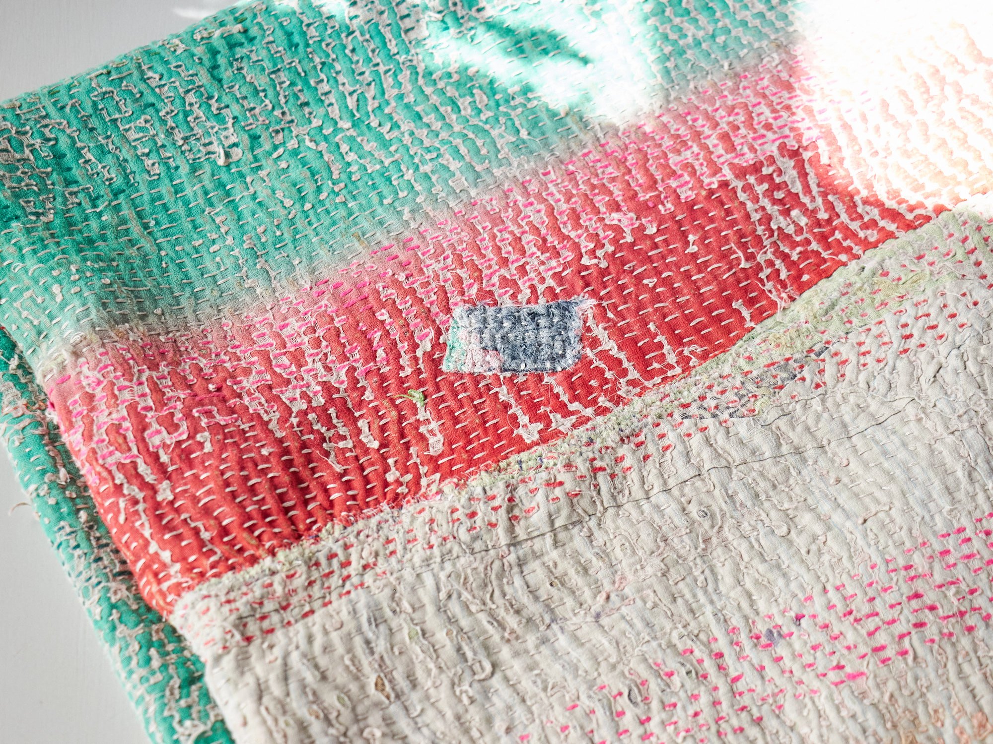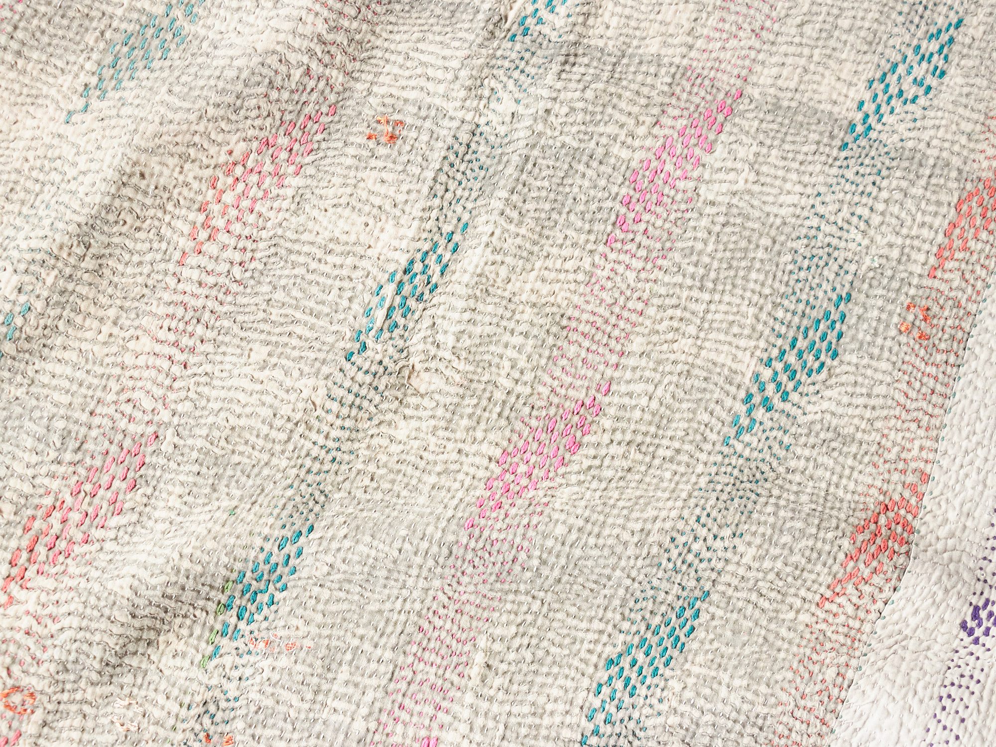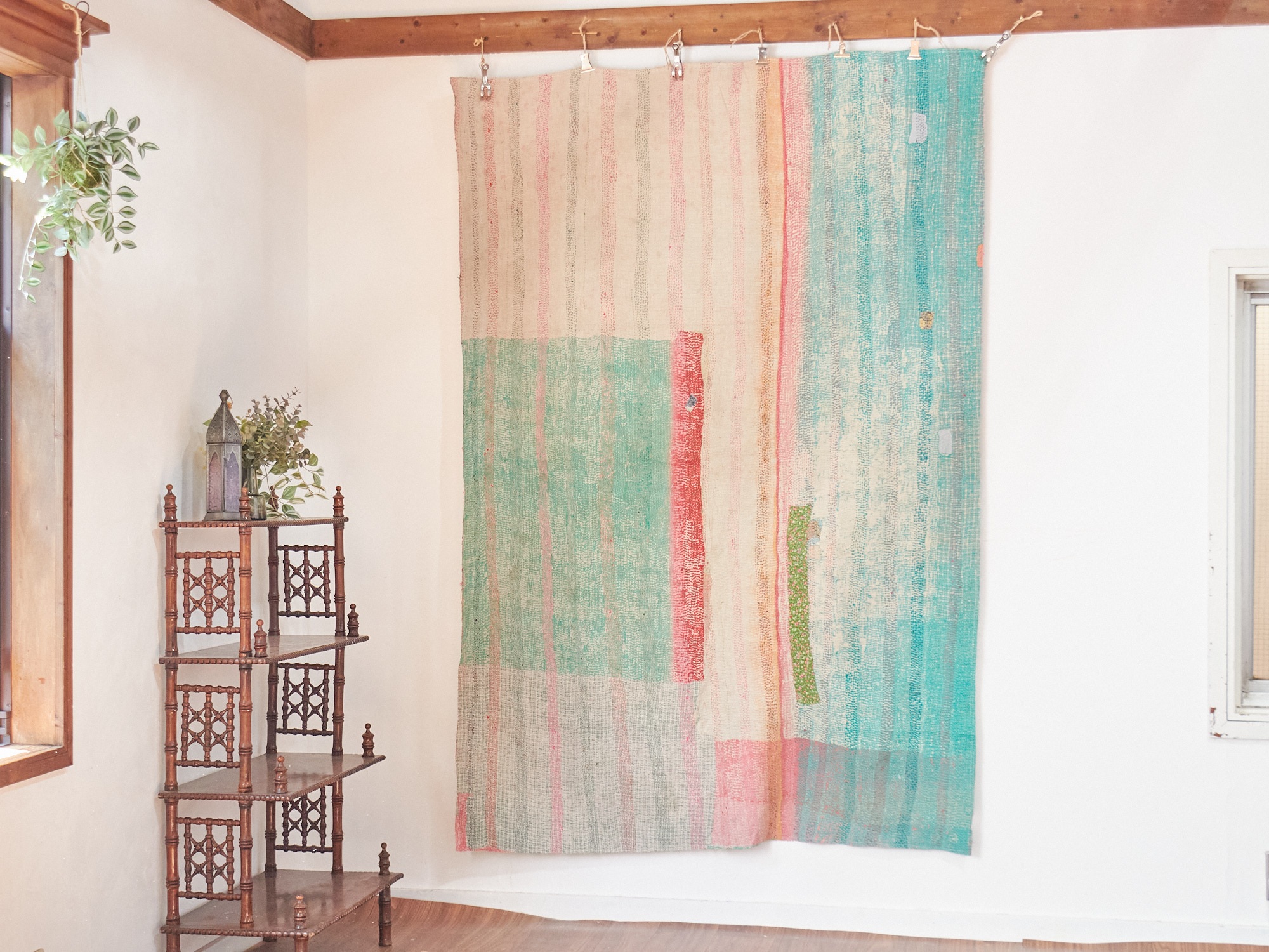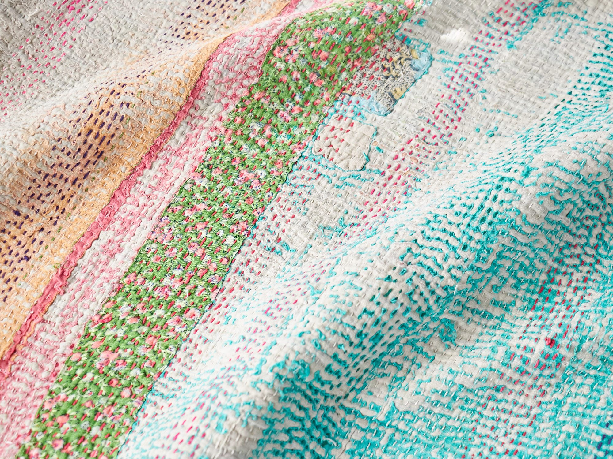 - インド カンタ刺繍 パッチワーク ラリーキルト ヴィンテージ199×136cm Kantha embroidery India