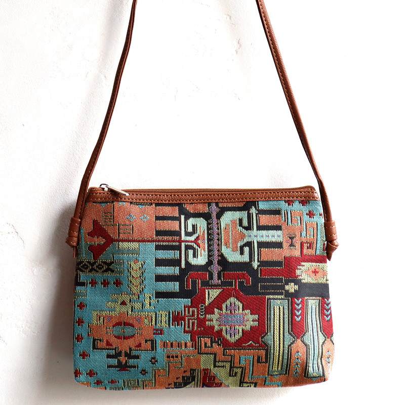 トルコの伝統柄を織り込んだ、エスニックなデザイン&カラーのポシェットです。