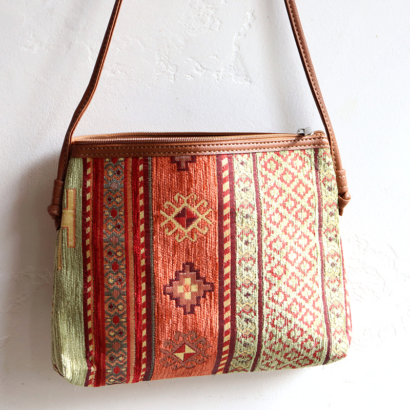 トルコの伝統柄を織り込んだ、エスニックなデザイン&カラーのポシェットです。