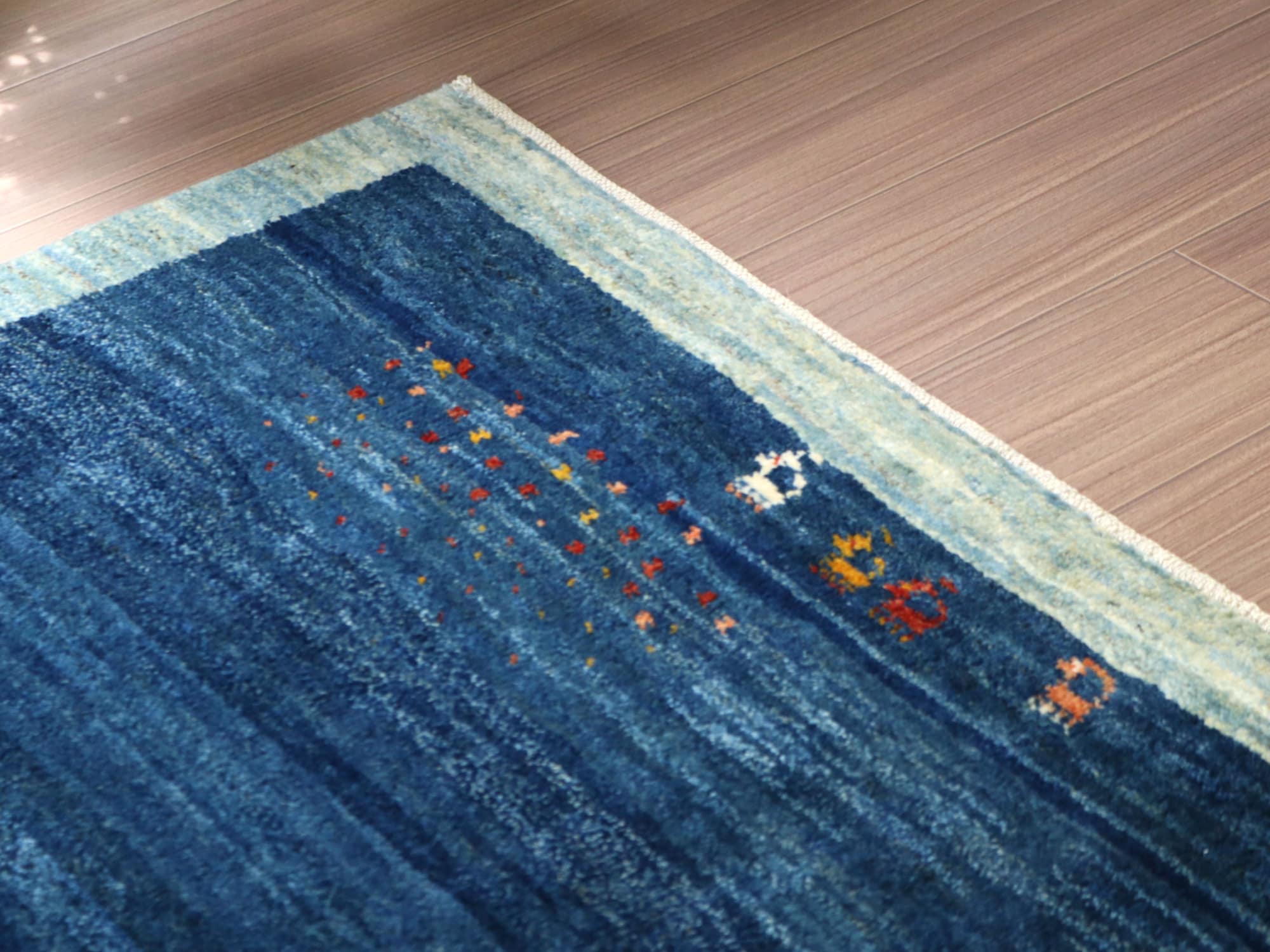 ギャッベ ノマド リビングサイズ197×156cm 素朴な手織りラグ ブルー