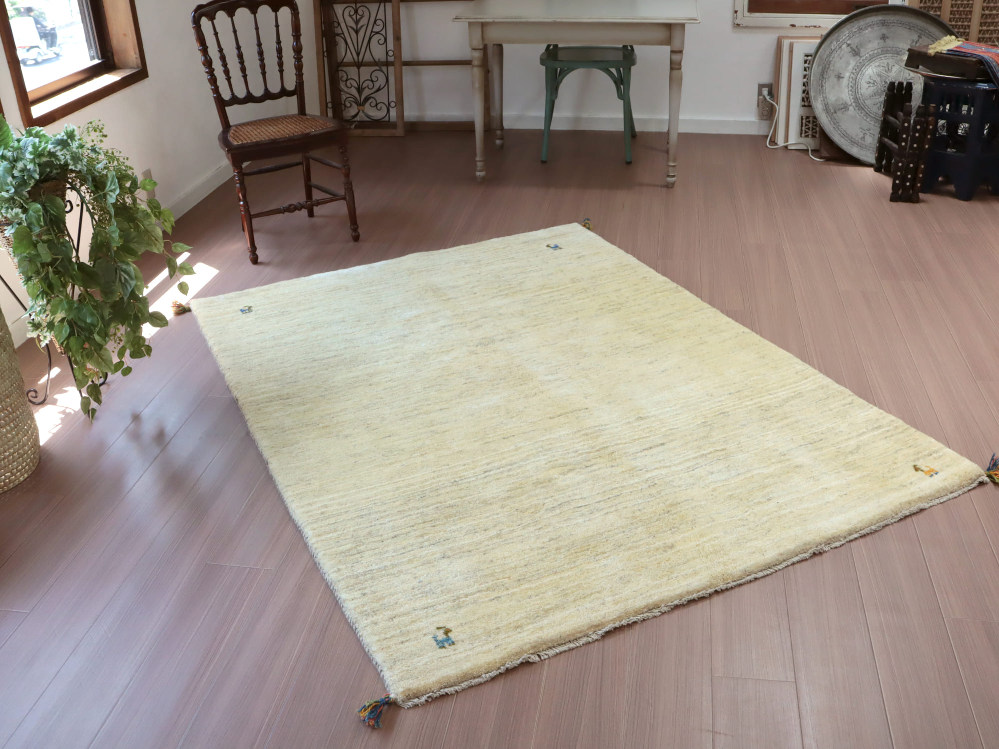 ギャッベ Gabbeh イラン産 手織りラグ198×148cm ナチュラルアイボリー 毛足の長いふかふかな織り