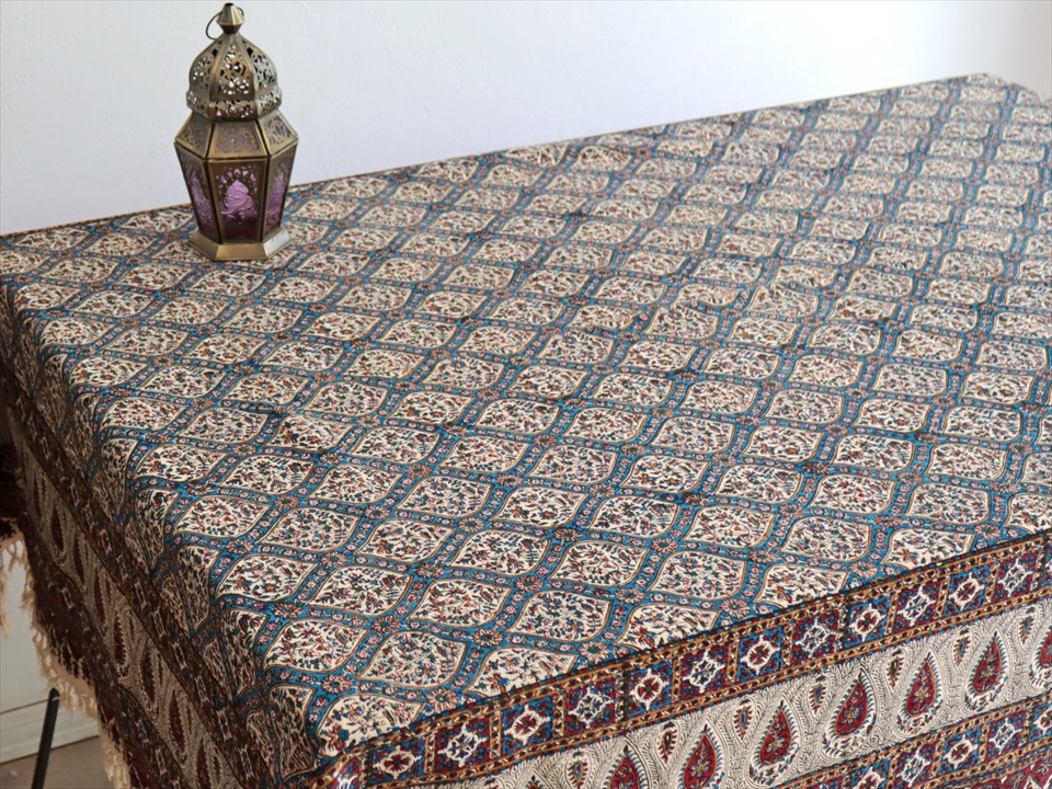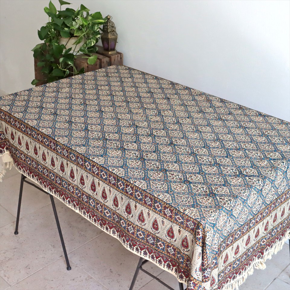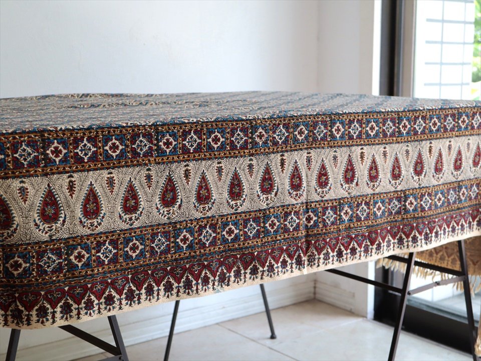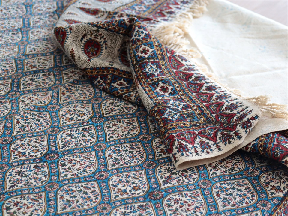 Key:コットン 綿100% 手染布 ブロックプリント 木版 捺染 伝統工芸 インド更紗 ジャワ更紗 ペイズリー フリークロス ベッドスプレッド ベッドカバー ソファカバー カーテン タペストリー ファブリック インテリアファブリック クラフト インテリア ペルシャ ペルセポリス イラン シルクロード アジアン エスニック