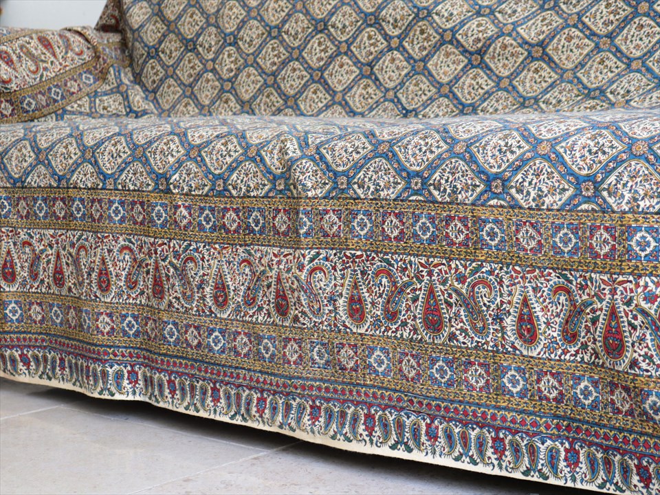 Key:コットン 綿100% 手染布 ブロックプリント 木版 捺染 伝統工芸 インド更紗 ジャワ更紗 ペイズリー フリークロス ベッドスプレッド ベッドカバー ソファカバー カーテン タペストリー ファブリック インテリアファブリック クラフト インテリア ペルシャ ペルセポリス イラン シルクロード アジアン エスニック