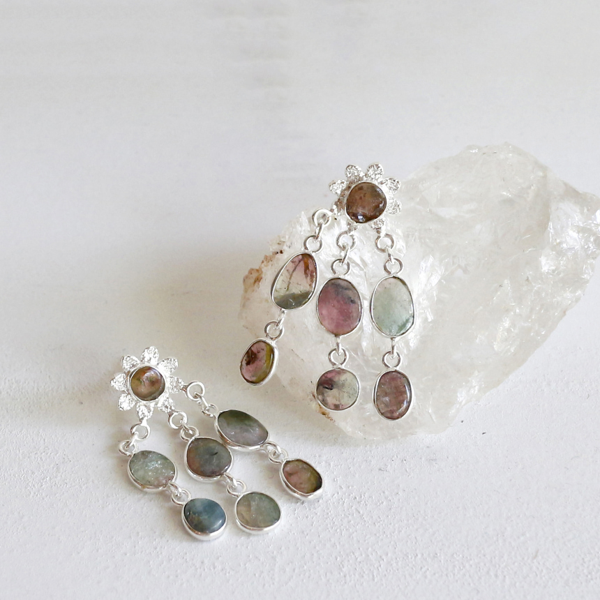 - トルマリン シルバーピアス フラワーフリンジピアス くすみカラー Jaipur ジャイプールジュエリー silver925 スタッド