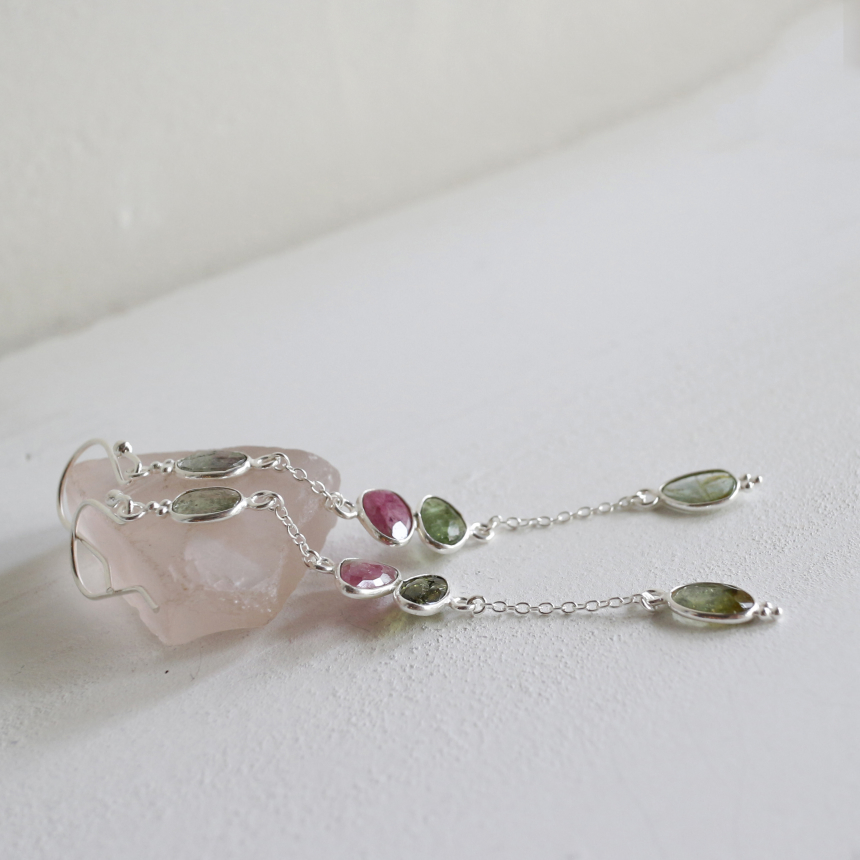 5. トルマリン シルバーピアス 揺れるロングチェーンピアス くすみカラー Jaipur ジャイプールジュエリー silver925