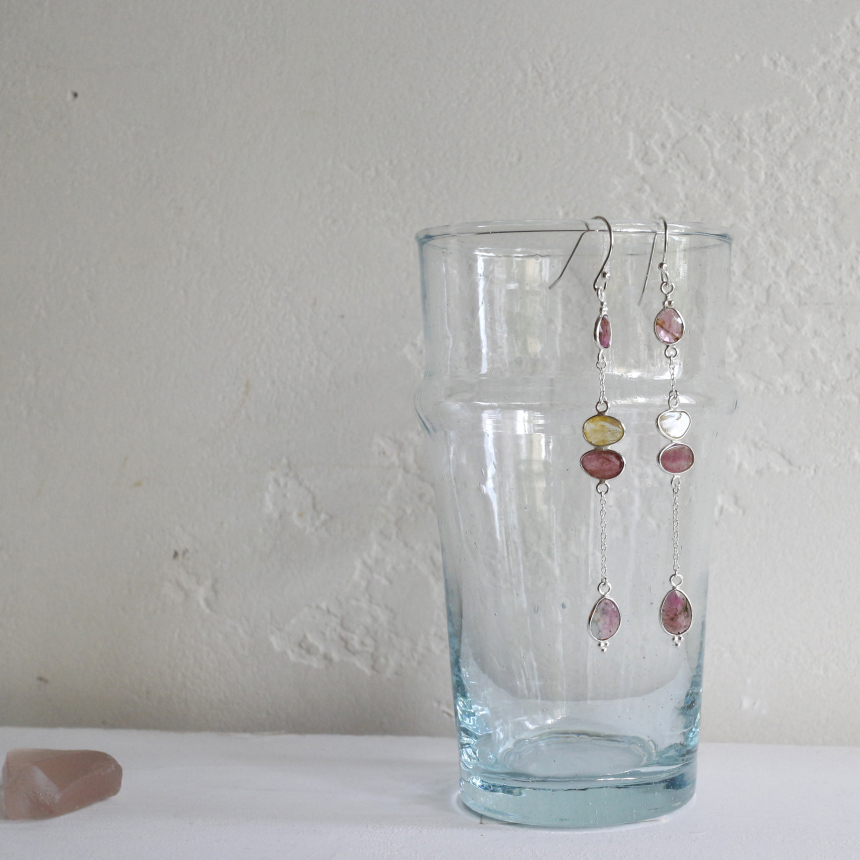 - トルマリン シルバーピアス 揺れるロングチェーンピアス くすみカラー Jaipur ジャイプールジュエリー silver925