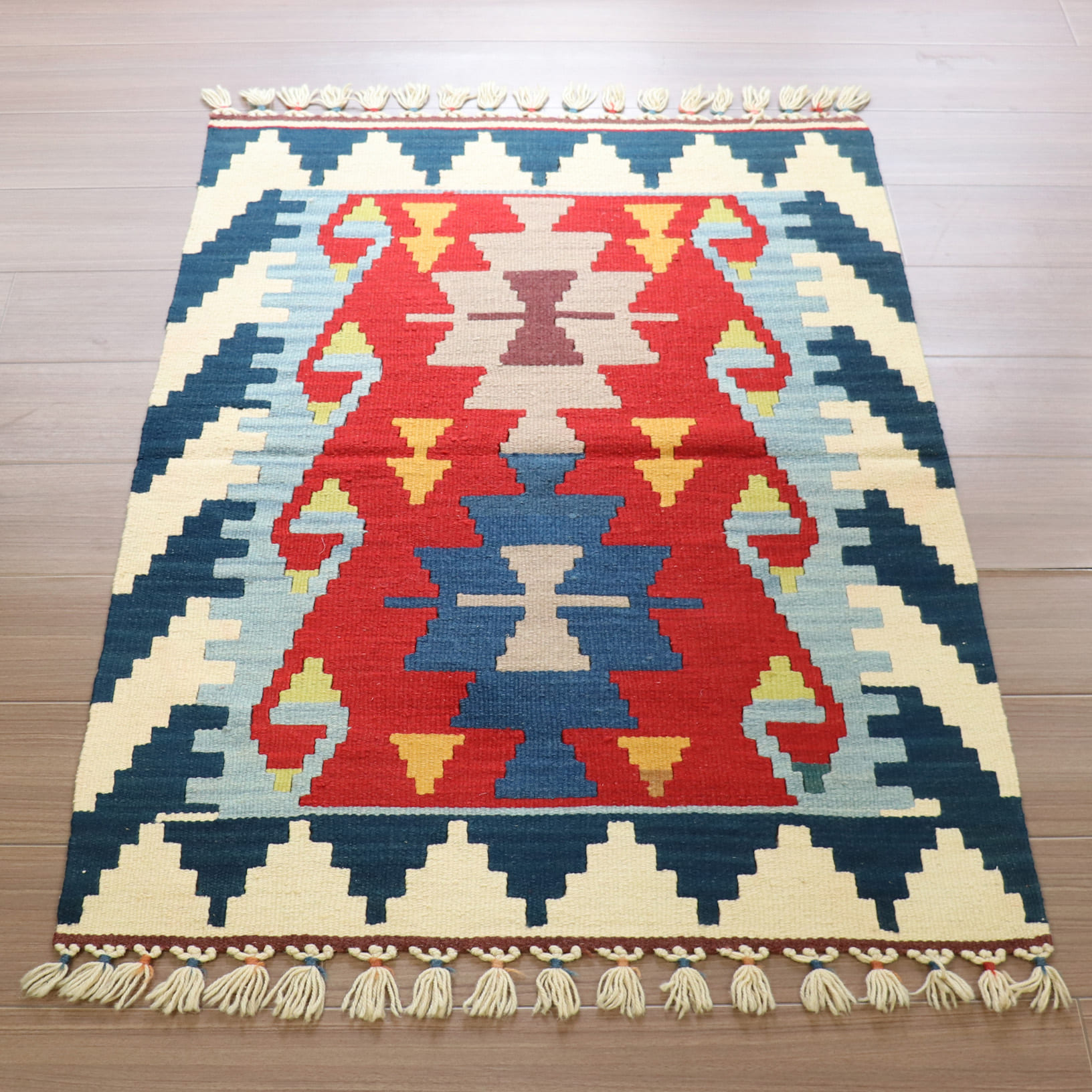 - カイセリ産手織りキリム チェイレキサイズ114×81cm 2つのイーブルアイ