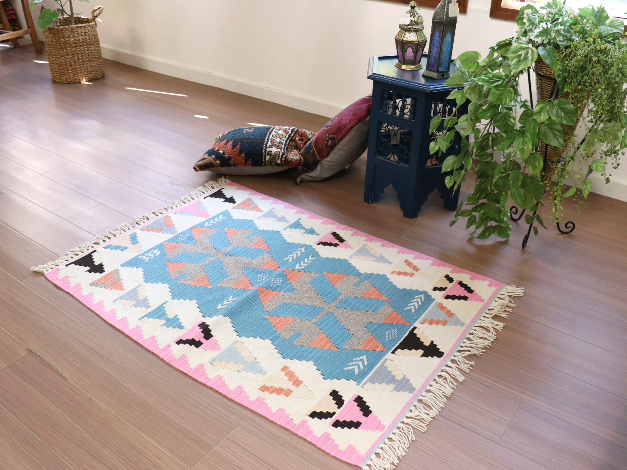 - カイセリ産手織りキリム チェイレキサイズ116×81cm ベレケット パステル