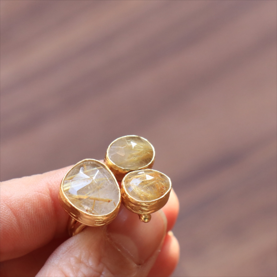 5. ルチルクォーツ リング 3ストーン アルサメイア トルコジュエリー 3つの石