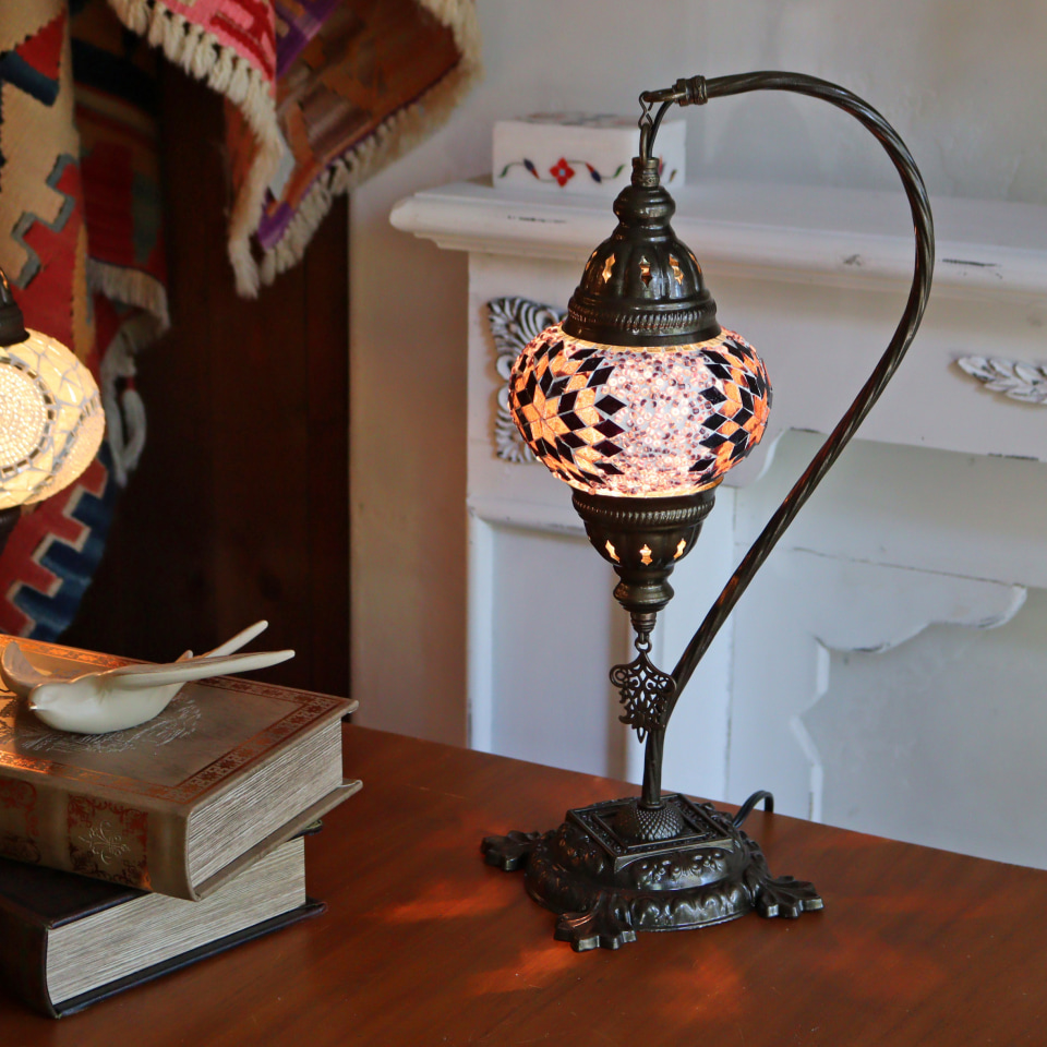 トルコで1つ1つ手作りされた、モザイクのガラス球が使われたテーブルランプ。