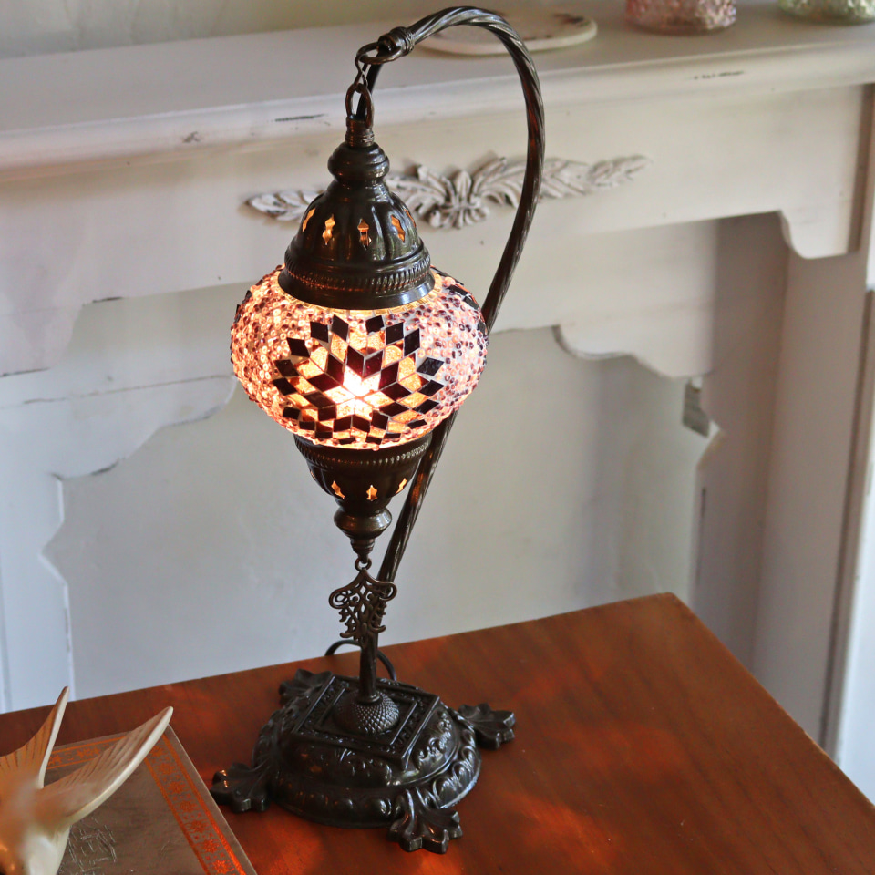 トルコランプ モザイクテーブルランプ ハンギング 全高42cm 横幅23cm パープル/ピンク E17