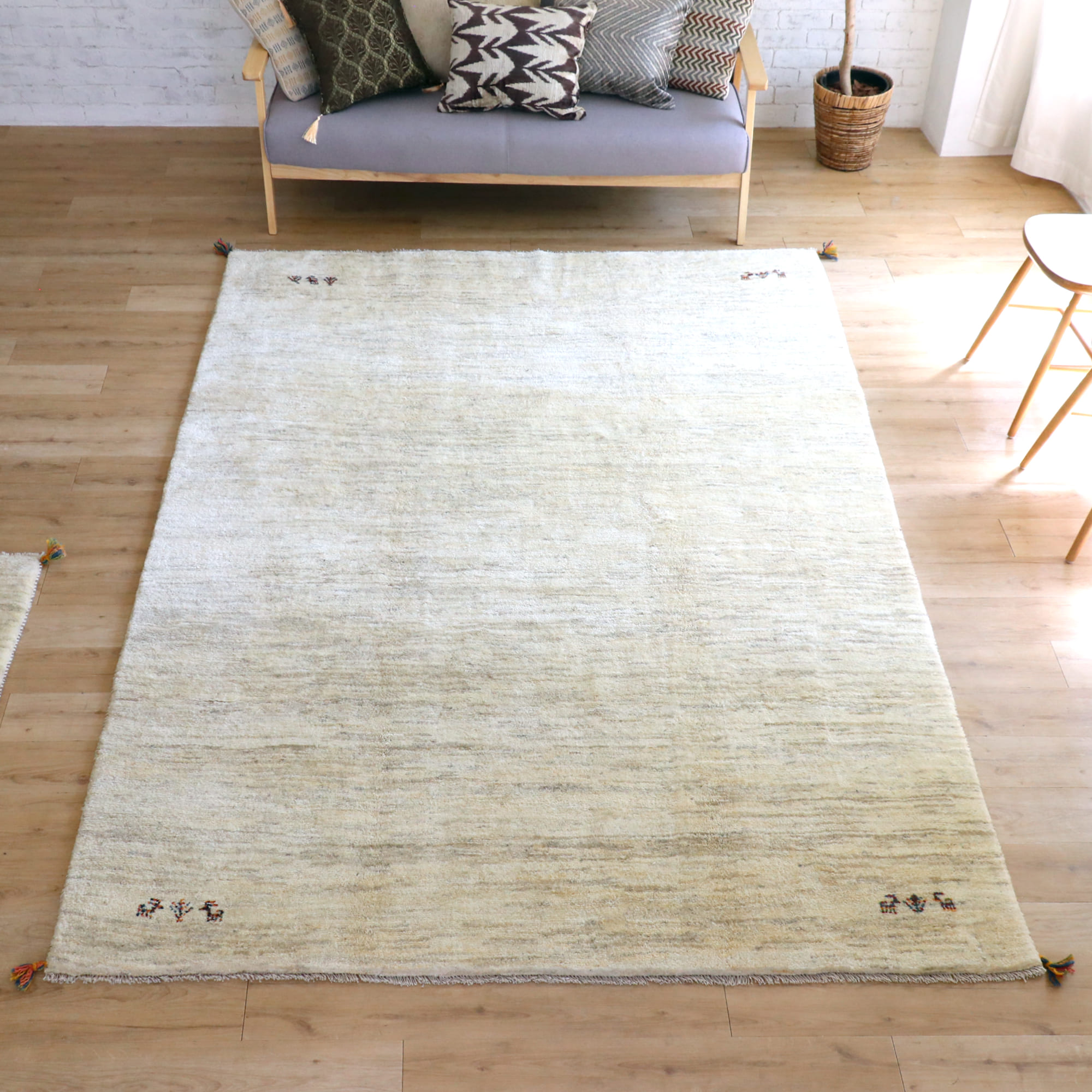 - ギャッベ イラン産手織りラグ ふかふか277×195cm ナチュラルアイボリー 大型ルームサイズ