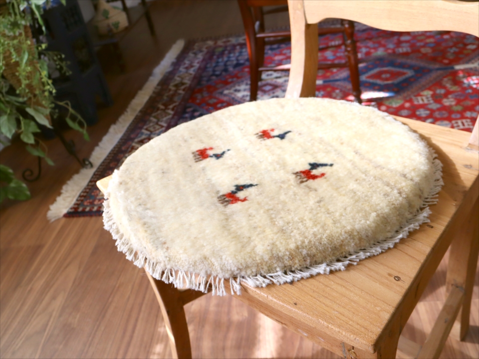 【15%OFF】ギャッベ 円形座布団サイズ φ40cm ナチュラルアイボリー ベージュ