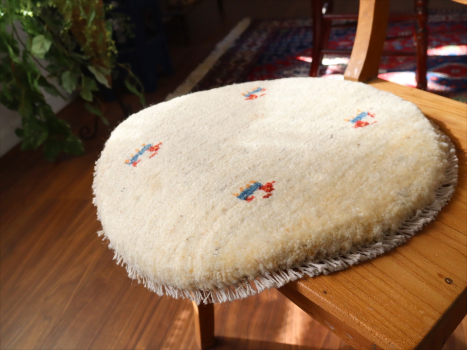 【15%OFF】ギャッベ 円形座布団サイズ φ41cm ナチュラルアイボリー ベージュ