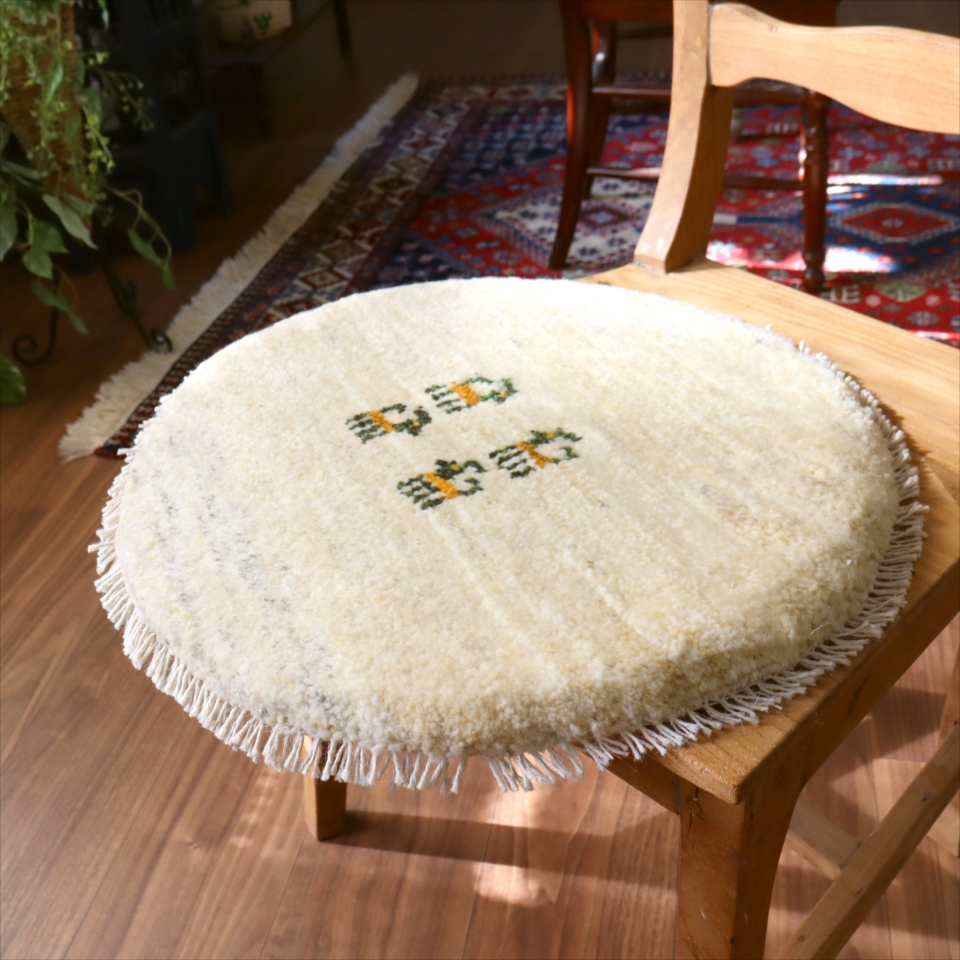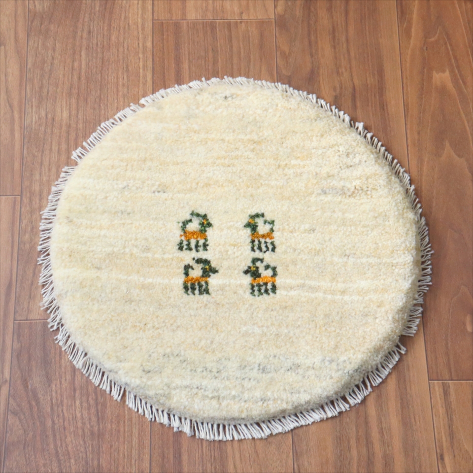 【15%OFF】ギャッベ 円形座布団サイズ φ42cm ナチュラルアイボリー ベージュ