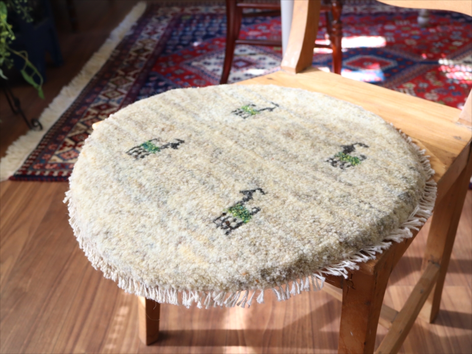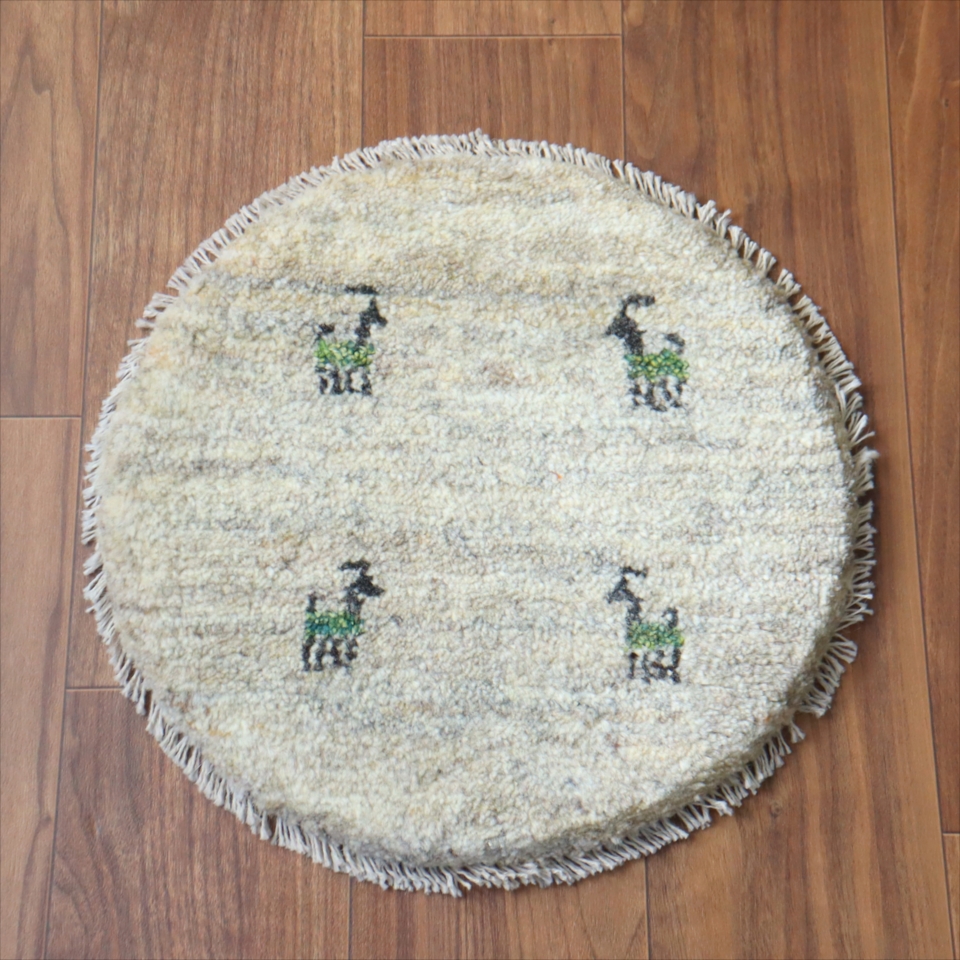 【15%OFF】ギャッベ 円形座布団サイズ φ41cm ナチュラルアイボリー ベージュ