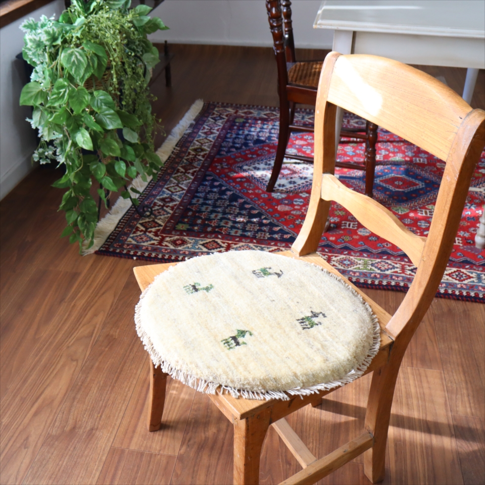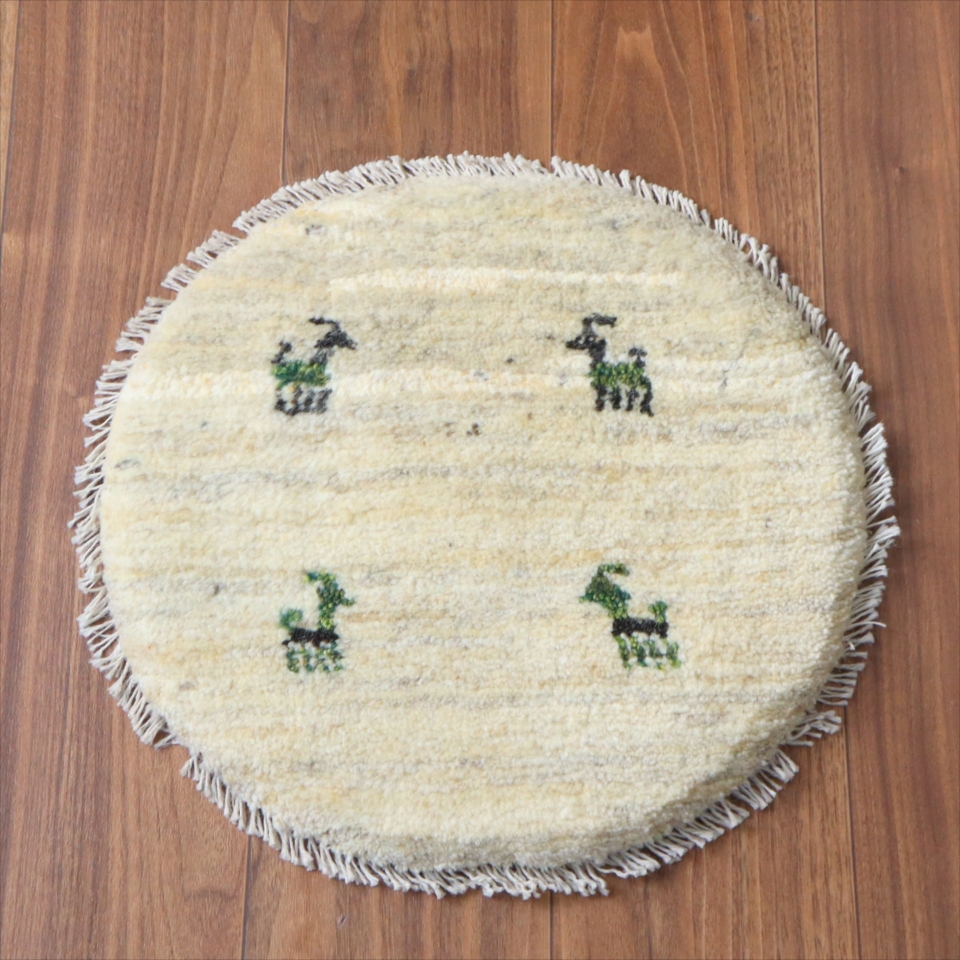 【15%OFF】ギャッベ 円形座布団サイズ φ40cm ナチュラルアイボリー ベージュ