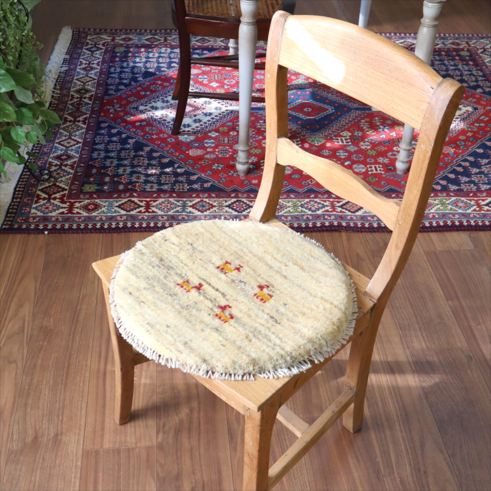 【15%OFF】ギャッベ 円形座布団サイズ φ41cm ナチュラルアイボリー ベージュ