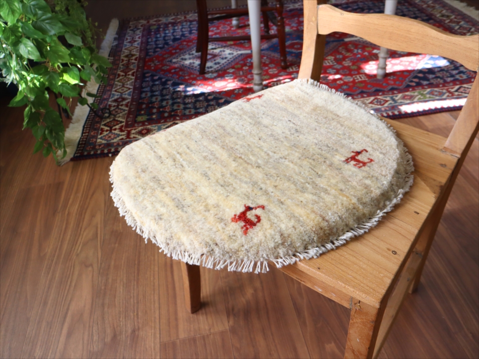 【15%OFF】ギャッベ 円形座布団サイズ φ45cm ナチュラルアイボリー ベージュ