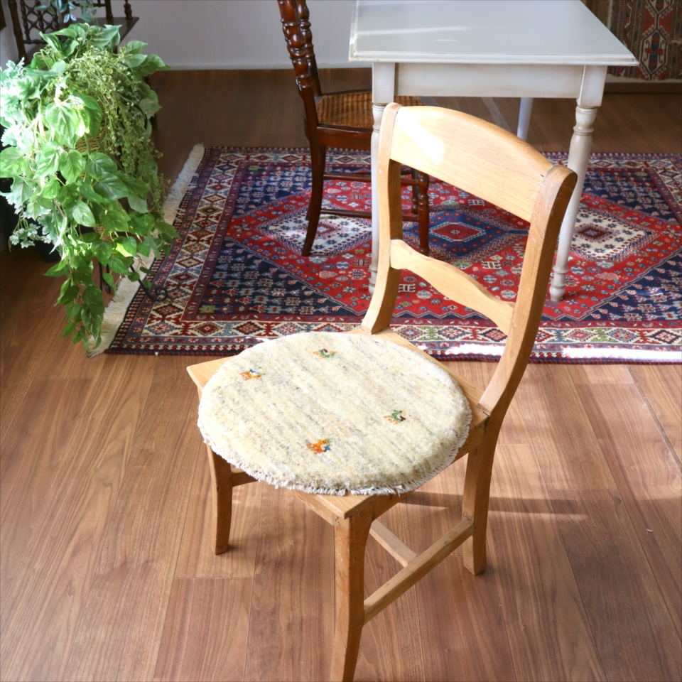 【15%OFF】ギャッベ 円形座布団サイズ φ41cm ナチュラルアイボリー ベージュ