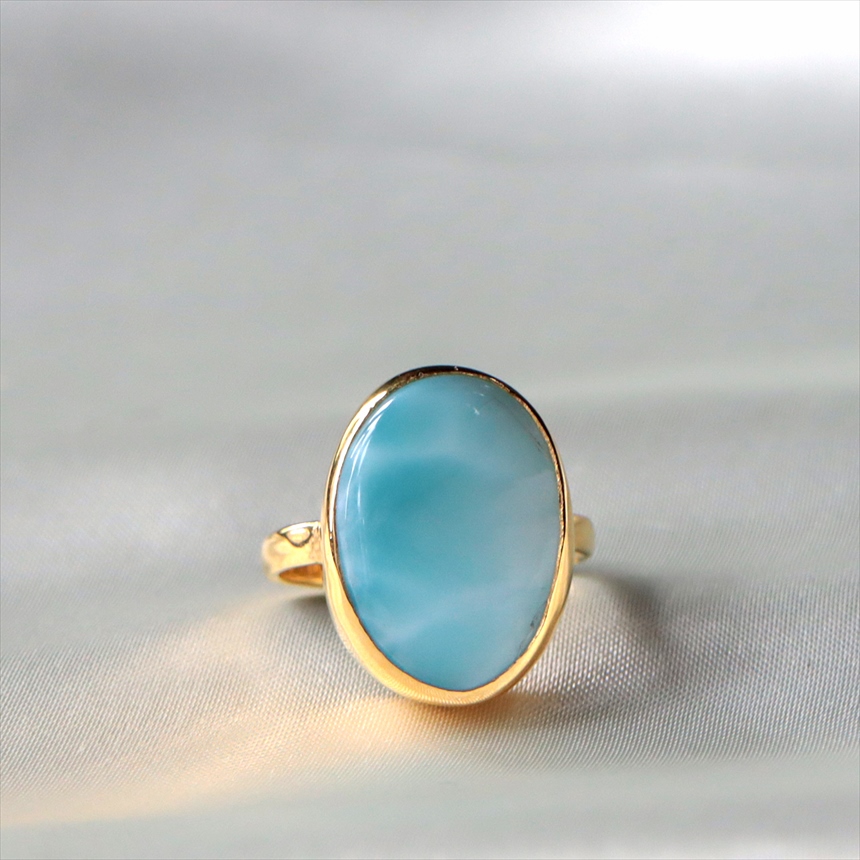 ラリマー シルバーリング オーバル 18KGF 天然石 トルコジュエリー カラーストーン