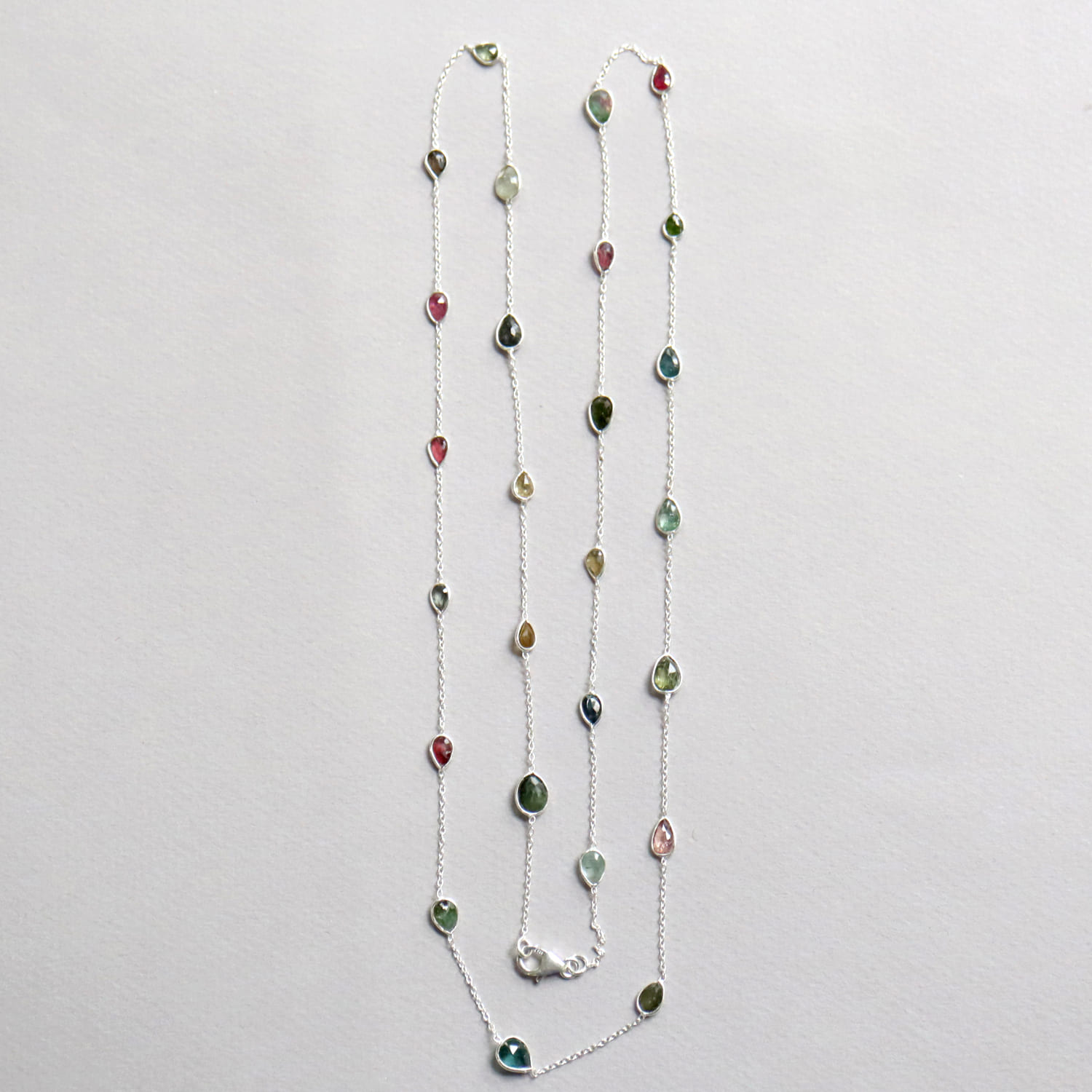 - トルマリン シルバー ロングネックレス87cm Tourmaline silver necklace Jaipur jewelry