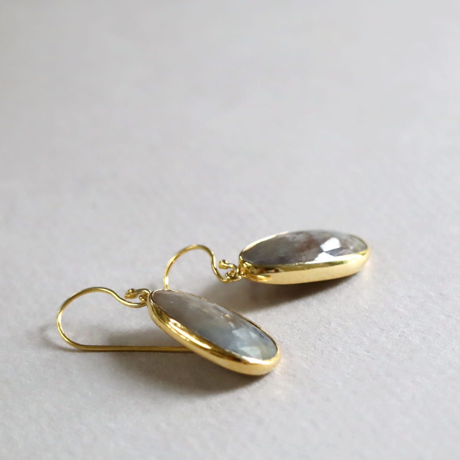- サファイア オーバルピアス【現品】くすみカラー トルコジュエリー 色石 シルバー925(18kgf)
