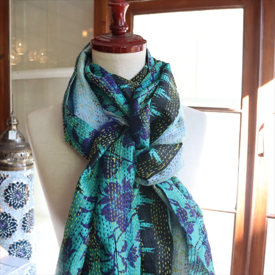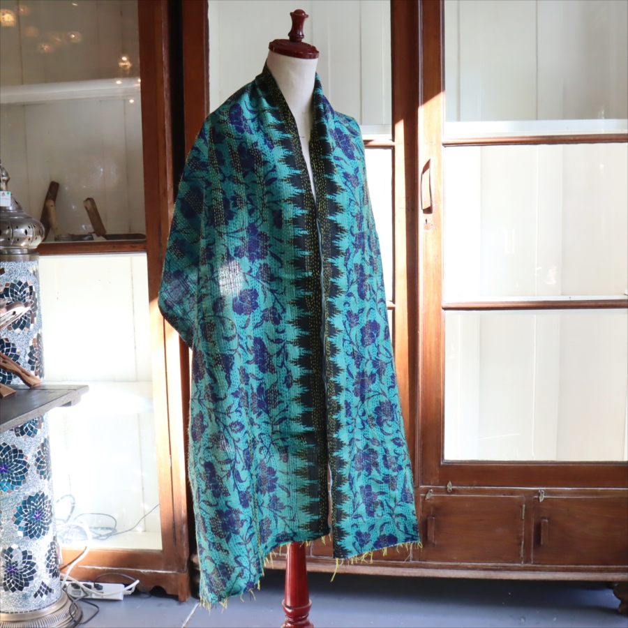 カンタ刺繍 シルクストール Kantha embroidery, India 202×46cm 【一点もの 現品】