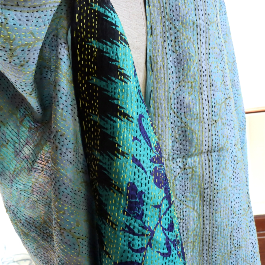 - カンタ刺繍 シルクストール Kantha embroidery, India 202×46cm 【一点もの 現品】