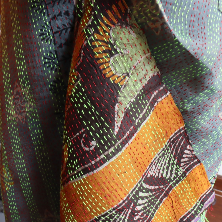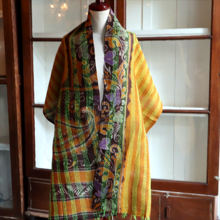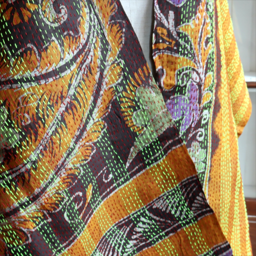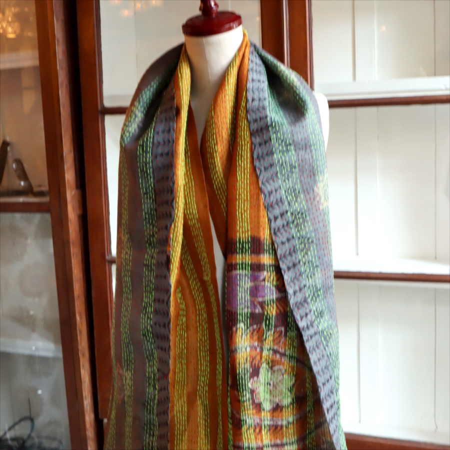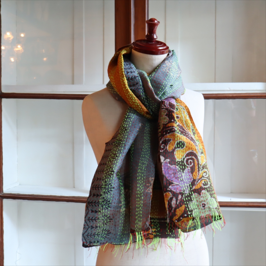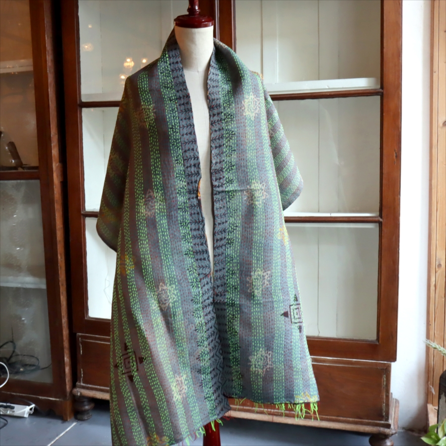 - カンタ刺繍 シルクストール Kantha embroidery, India 201×50cm 【一点もの 現品】