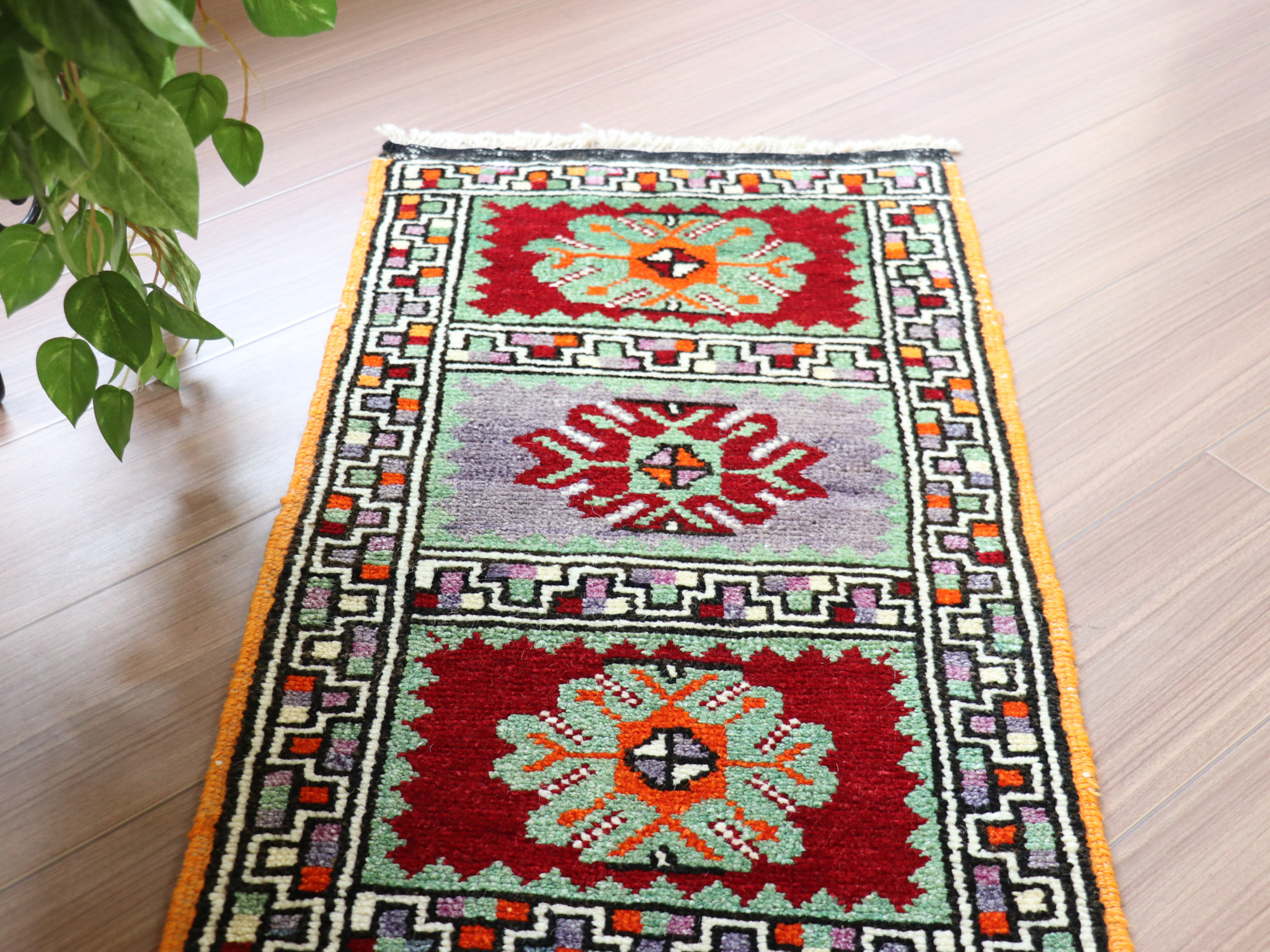 トライバルラグ ヤストゥク トルコ手織り絨毯93×44cm エシュメ 4つのサンドゥック