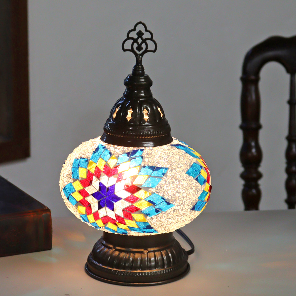 トルコランプ モザイクテーブルランプ 直径16cm 高さ27cm ホワイト