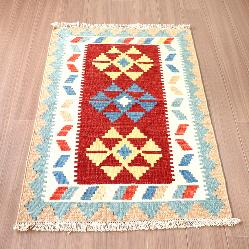 - カシュカイキリム イラン 手織り130×83cm 幾何学モチーフ 玄関マット