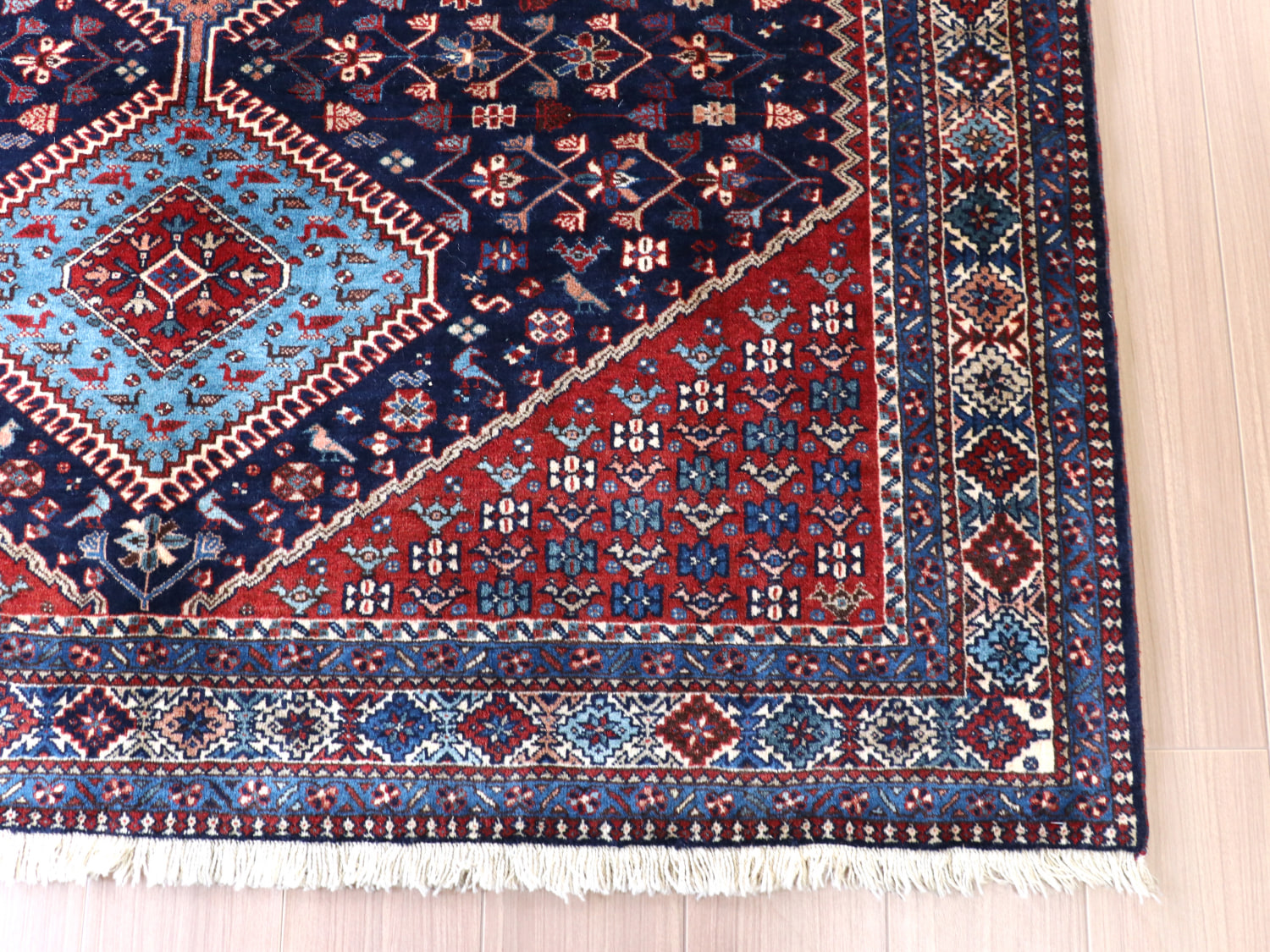- トライバルラグ 部族絨毯 イラン南部ヤラメ Yalameh 240×156cm ネイビー 鳥と花のモチーフ