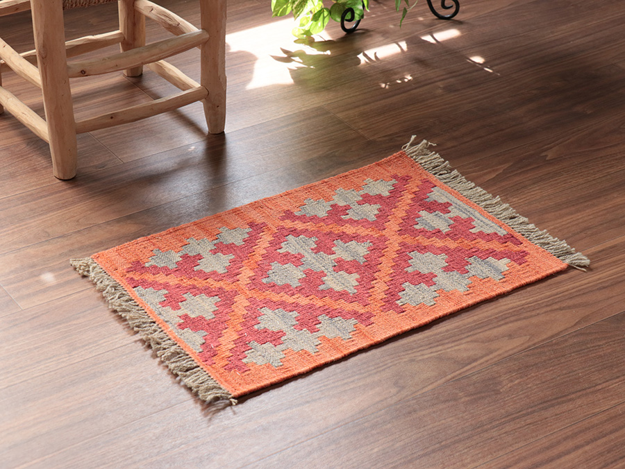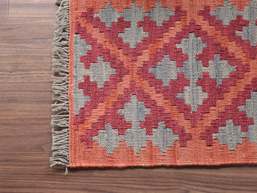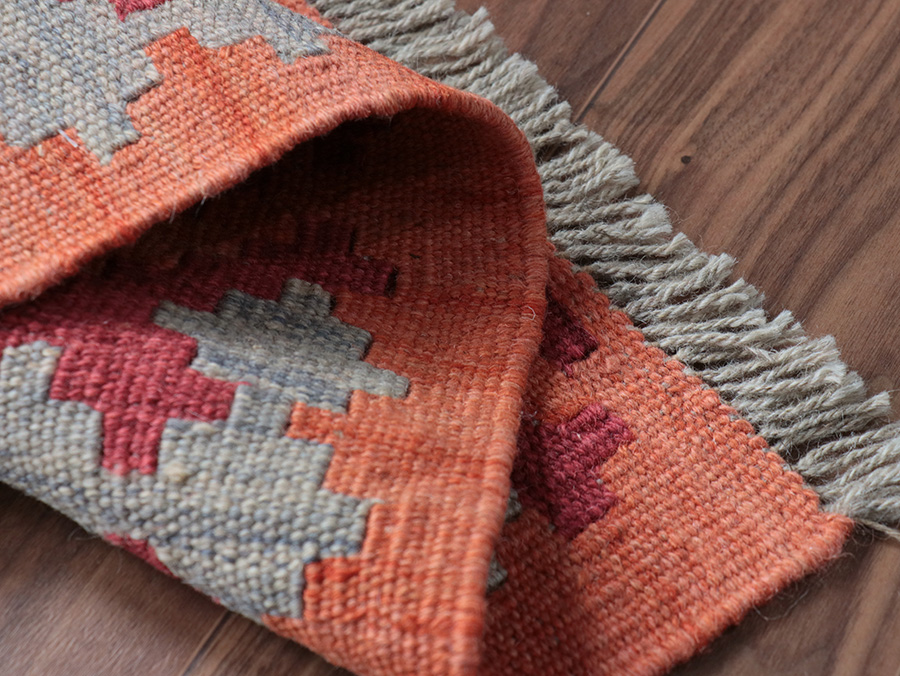キリムはすべて手織りで作られています。織る女性の手の加減によって、サイズの多少の誤差やゆがみ等がありますことはご了承願います。
