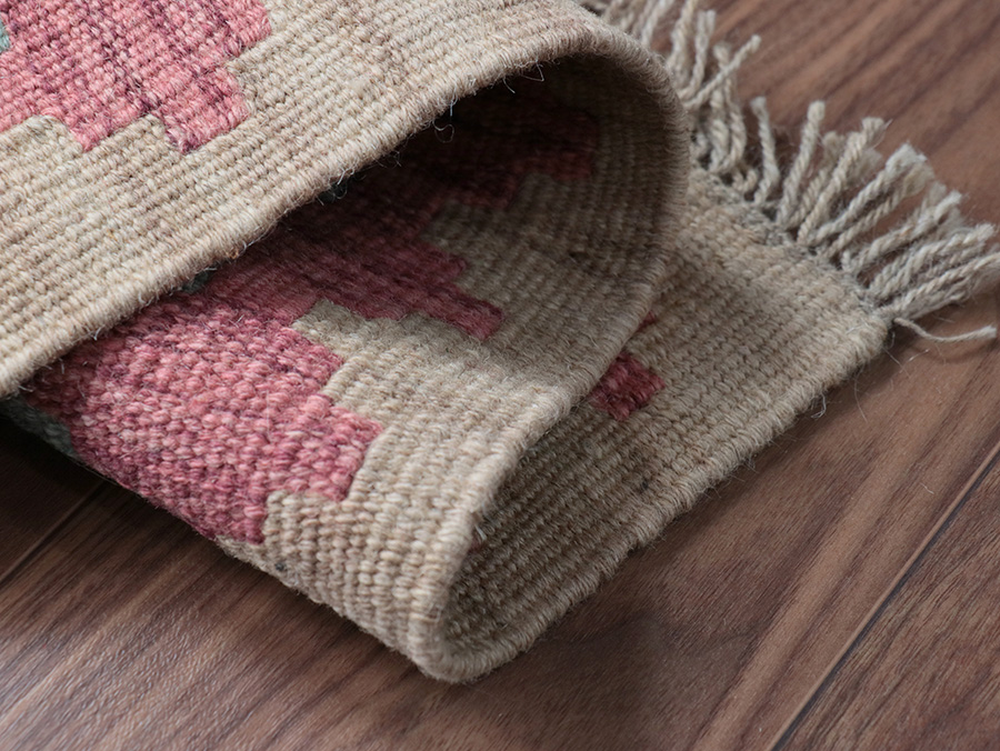 キリムはすべて手織りで作られています。織る女性の手の加減によって、サイズの多少の誤差やゆがみ等がありますことはご了承願います。