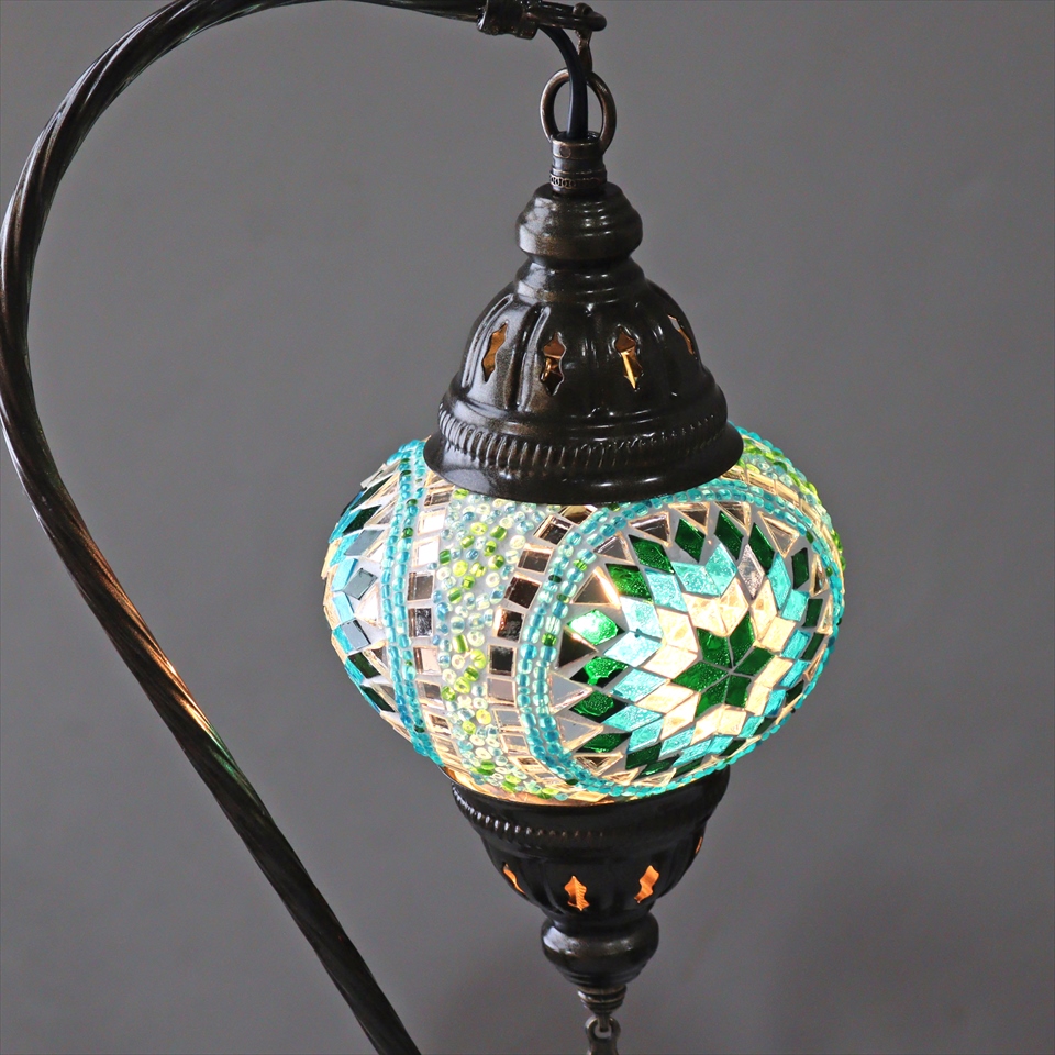 トルコランプ モザイクテーブルランプ ハンギング 全高42cm 横幅23cm ブルー/グリーン