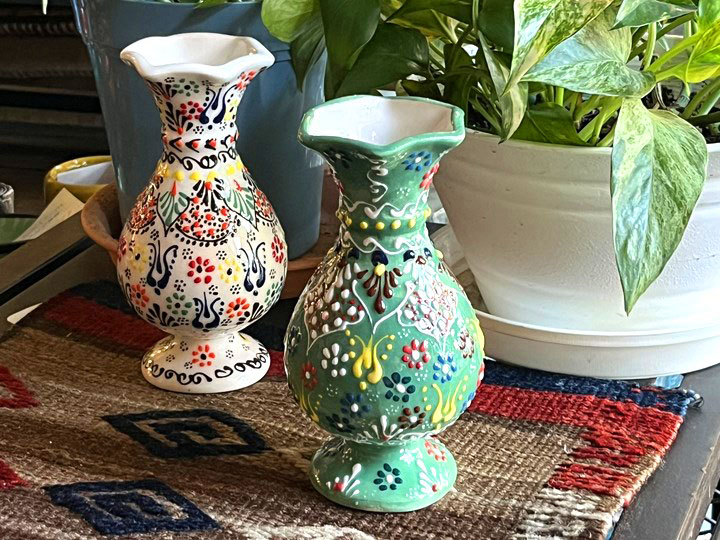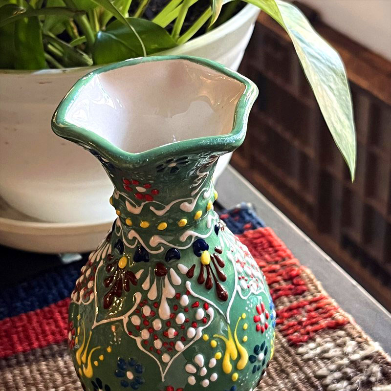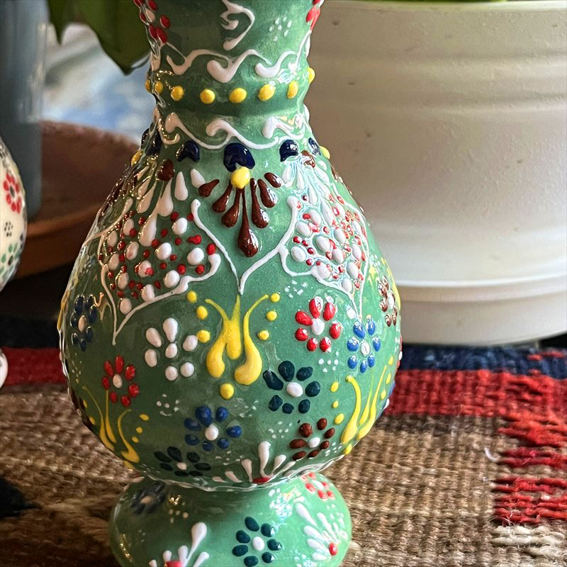 トルコの陶器産業の中心地キュタフヤで作られています。凹凸あるテクスチャでカラフルなフラワーデザインが手書きで描かれています。