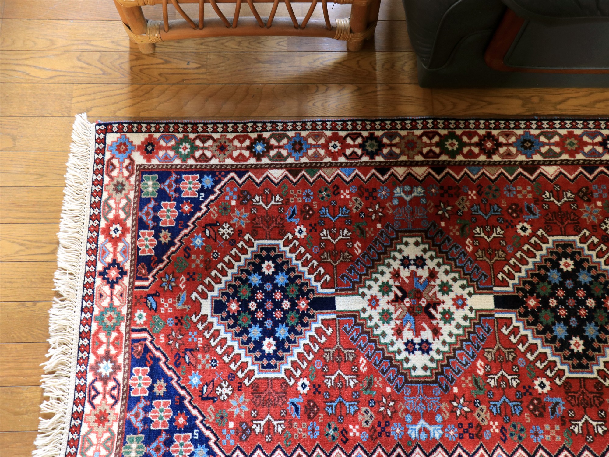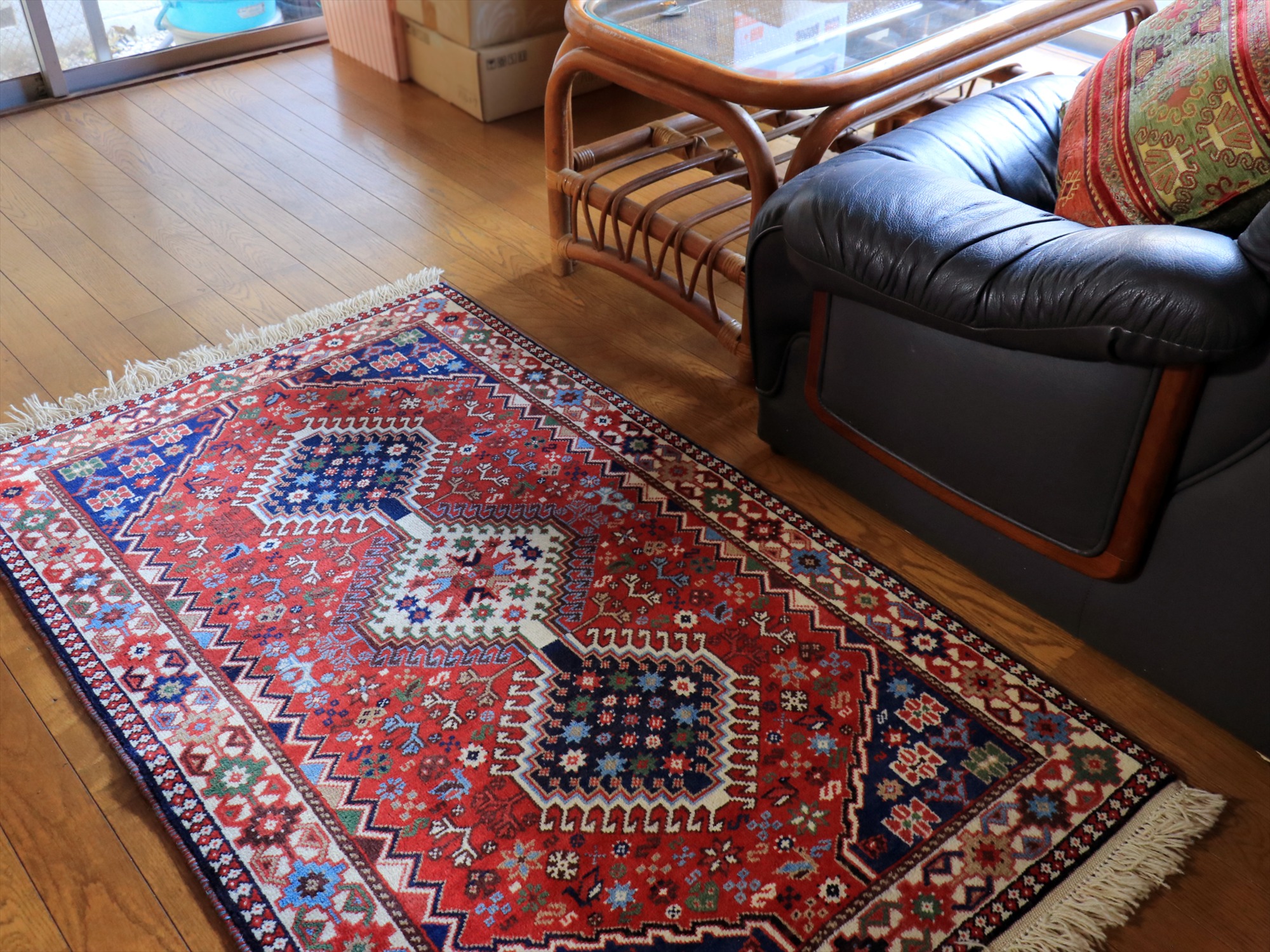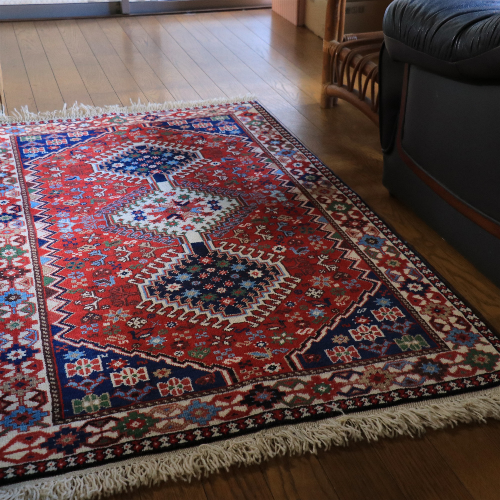 【ヤラメ(Yalameh)】ギャベを織るカシュカイ族の中でも早い段階で定住生活に入ったグループで、現在では古都イスファハンからシーラーズの間のエリアに点在して多く暮らしています。トルコ語に近い言語を話し、じゅうたんのデザインもまたキリムに似た幾何学モチーフが使われています。細かく整った模様、やわらかく光沢のある質感が特徴です。