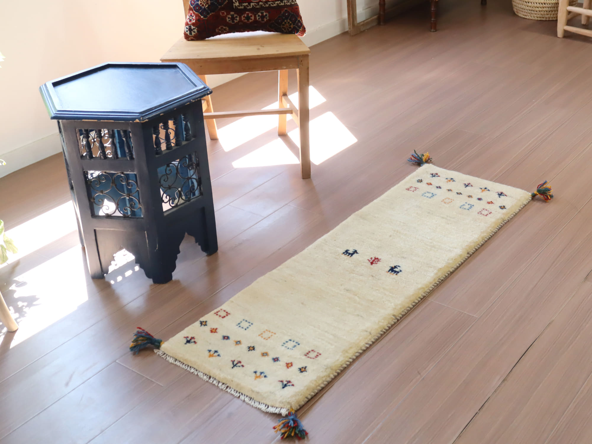 Key:ギャベ, ラグ, 手織り絨毯, 部族絨毯, 草木染, カシュカイ族, ウール製, キッチンマット, ベッドサイド, アイボリー, 東京,中野区, ガラタバザール, Gabbeh, Tribal Rug, Hand knotted, wool, Natural dye, Shiraz, Fars, Quashkai
