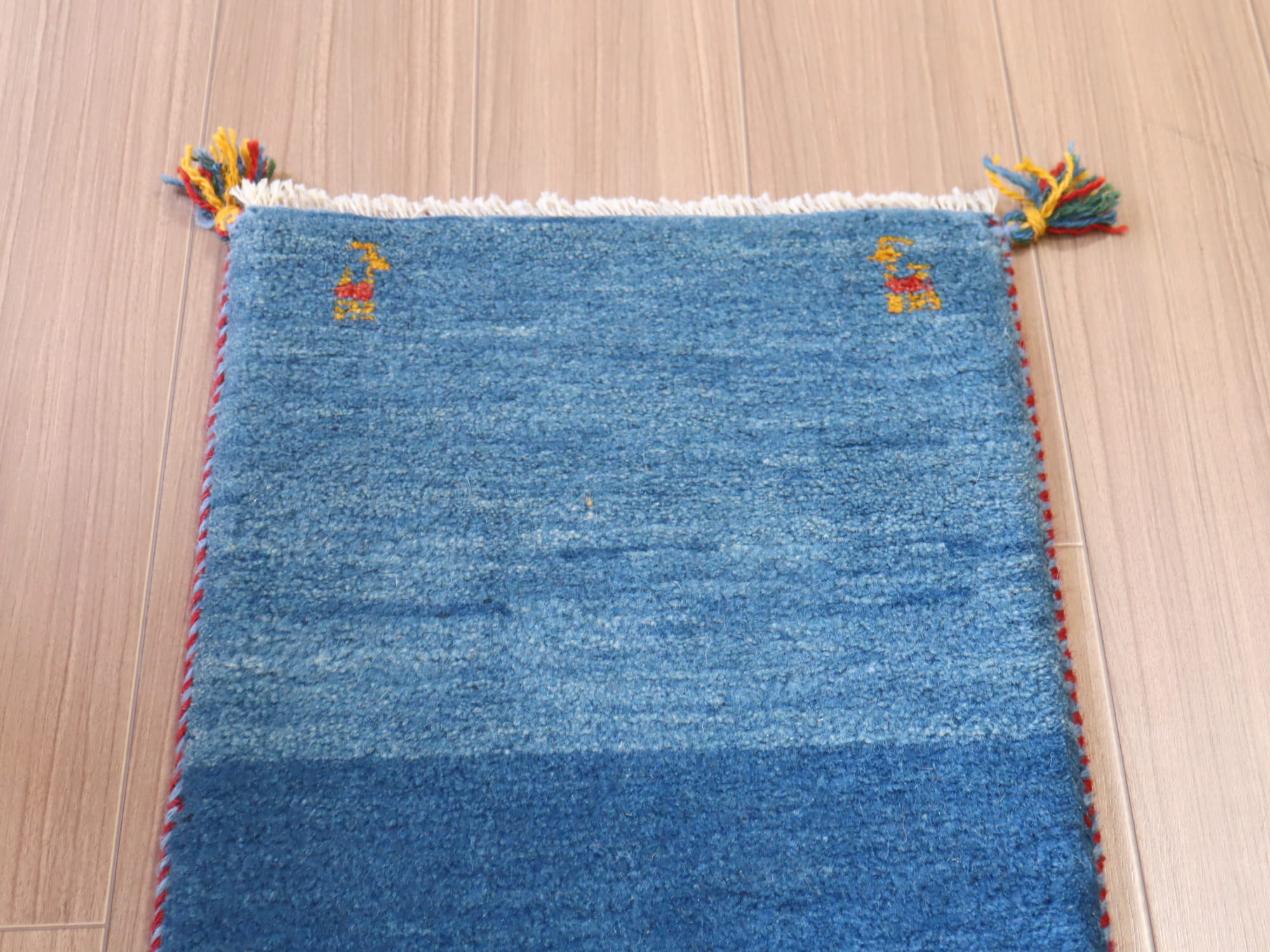 - ギャッベ イラン産 手織り 115x42cm ブルーグラデーション シンプル 無地