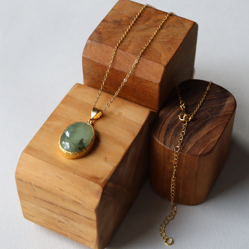 プレナイト オーバルペンダント 22KGP カボション アルサメイア 天然石一粒ネックレス トルコジュエリー