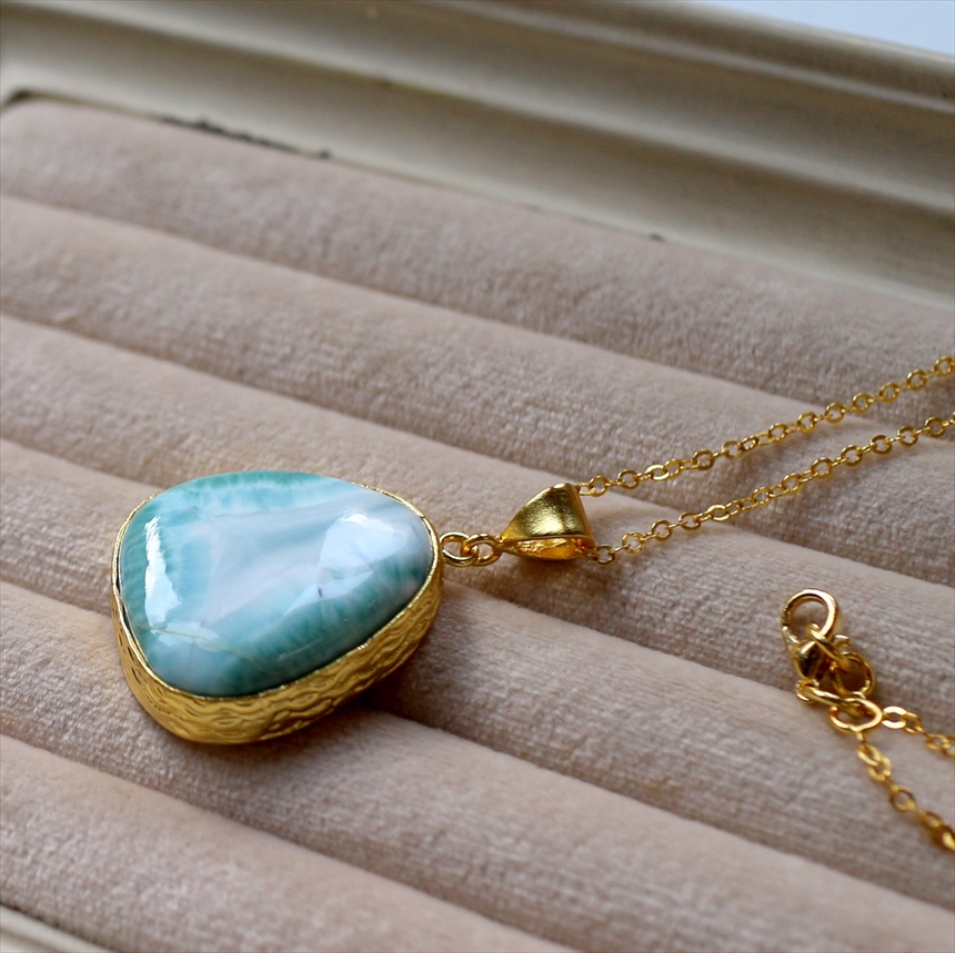ラリマー ペンダント 22KGP カボション ラフカット アルサメイア 天然石一粒ネックレス トルコジュエリー