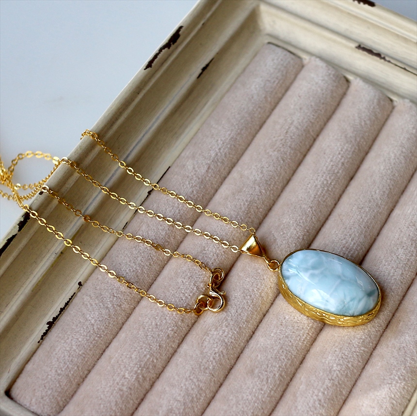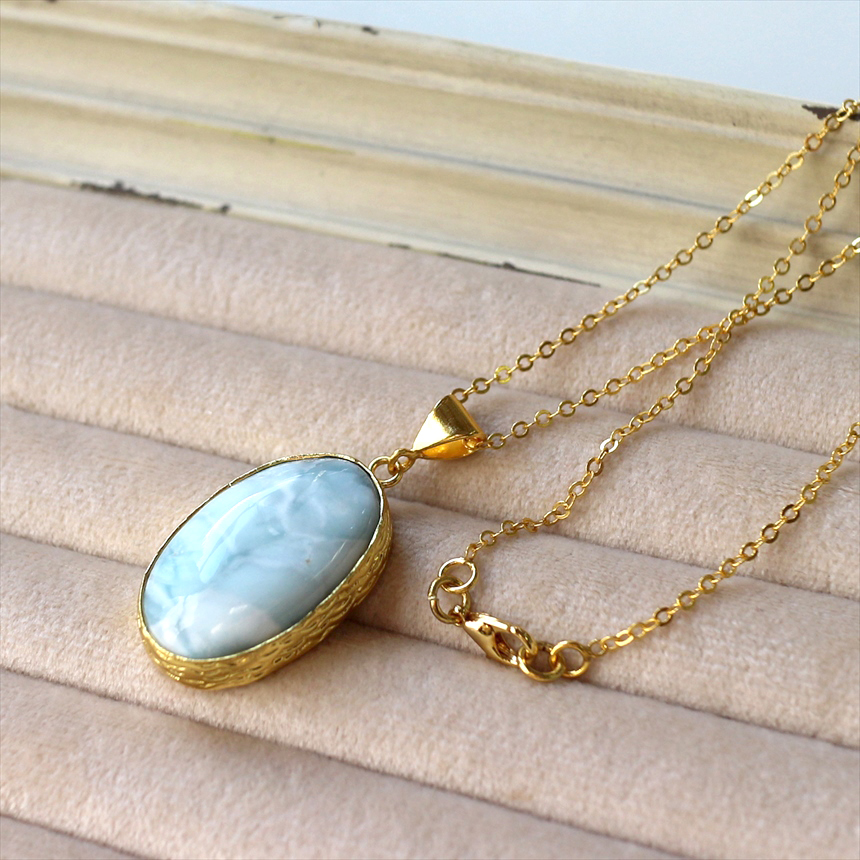 ラリマー ペンダント 22KGP カボション オーバル アルサメイア 天然石一粒ネックレス トルコジュエリー