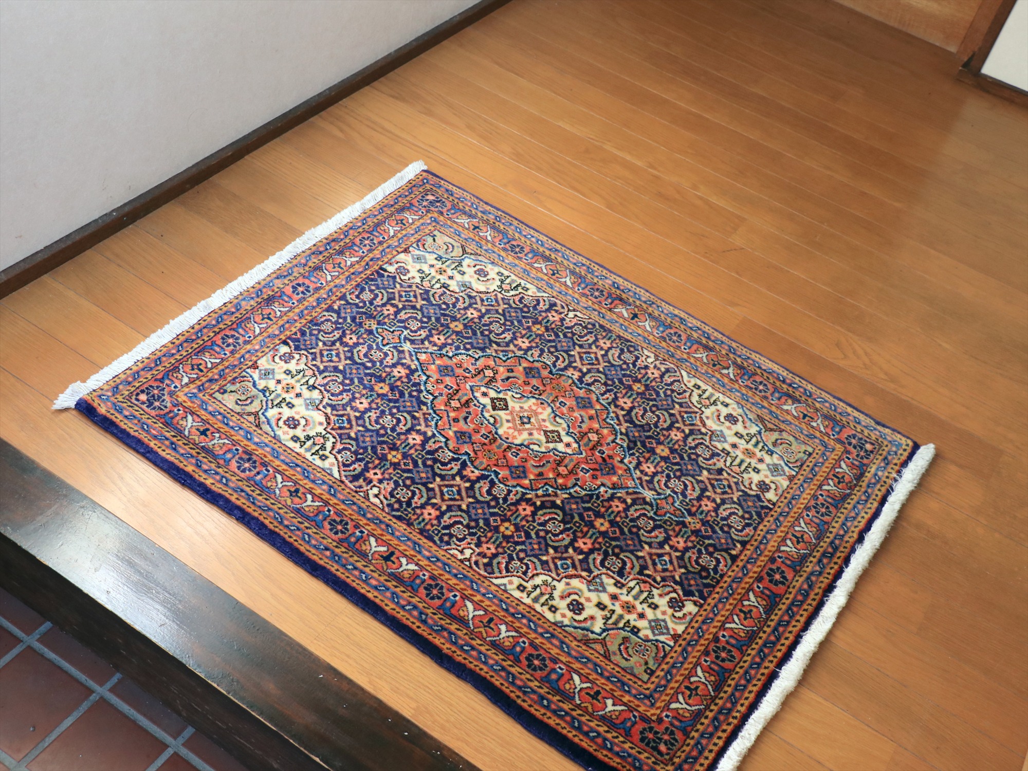 - サルーク 手織り絨毯 85×70cm 幾何学モチーフ