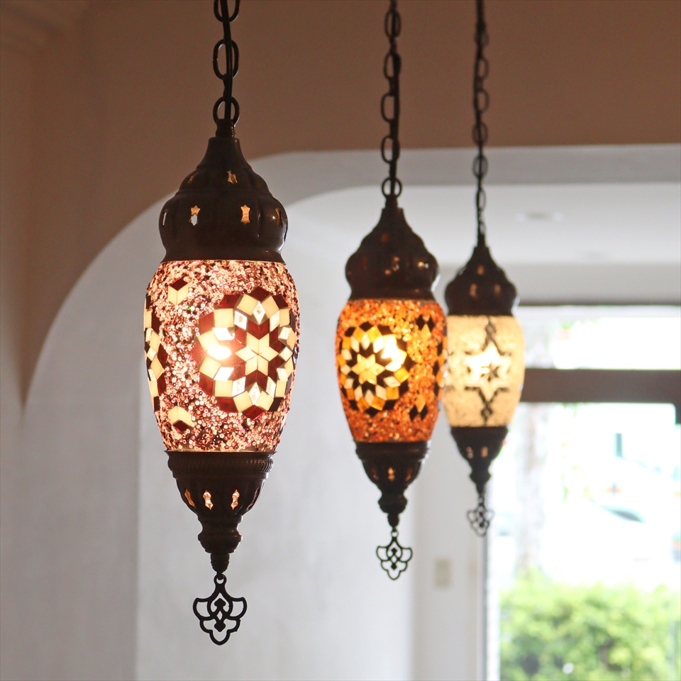 Key:トルコランプ モザイクランプ 天井照明 吹き抜け用照明 ガラスシェード ペンダントライト シーリングライト ランプ ライト 照明 間接照明 インテリア エスニック オリエンタル 引掛けシーリング対応