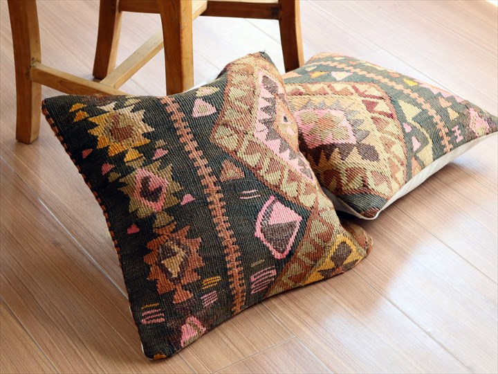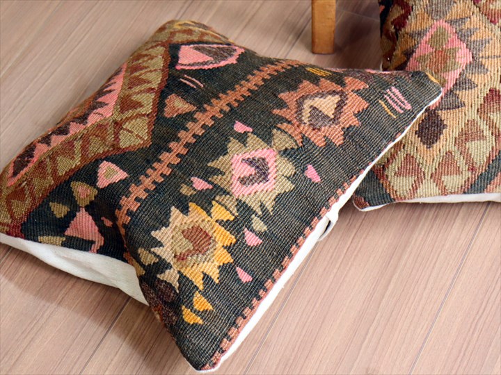 Key:Old Kilim, Kilim Cushion, Turkish Kilim, BOHO, Bohemian Decor, Vintage kilim, クッションカバー40cm, オールドキリム, トルコ, ヴィンテージキリム, トライバルラグ, ピロー, ボヘミアンスタイル, BO-HO, ウール100%, 手織り, 一点もの, ガラタバザール