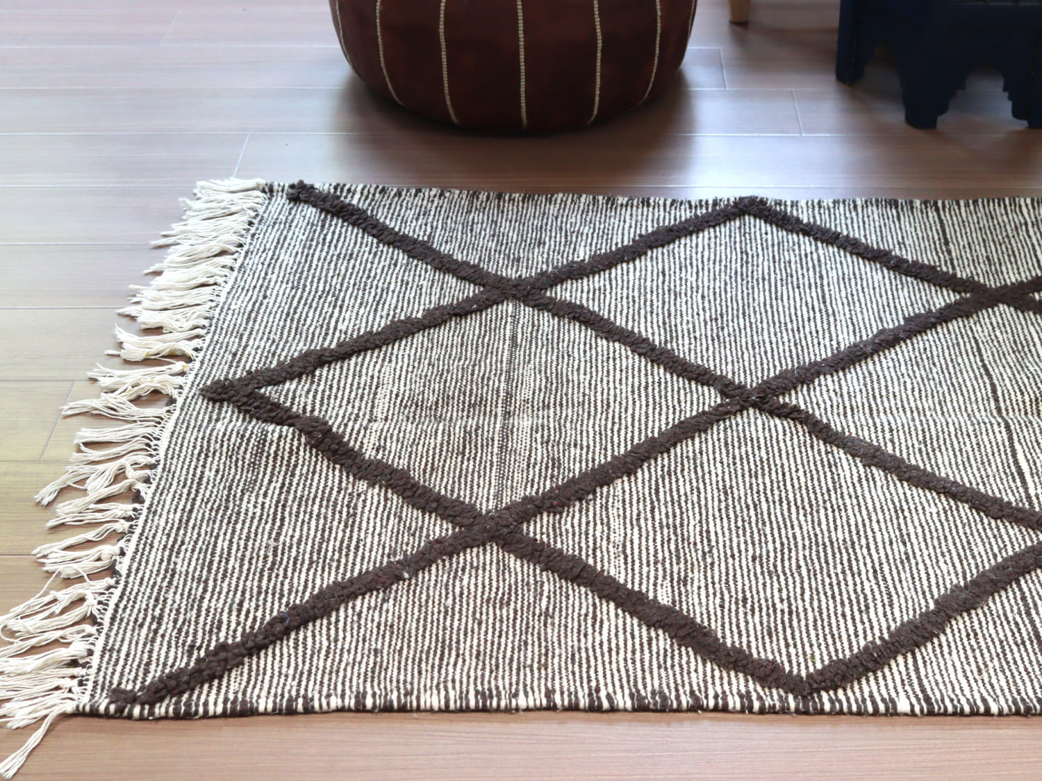 - モロッコキリム ザナフィ143×91cm 連なるひし形 ブラウン